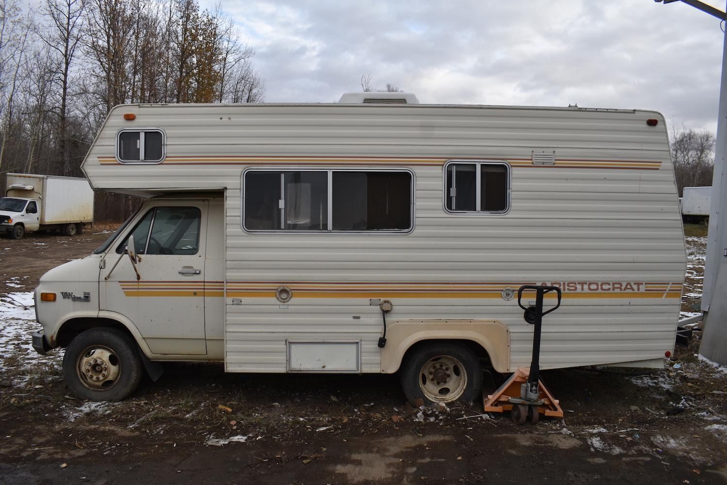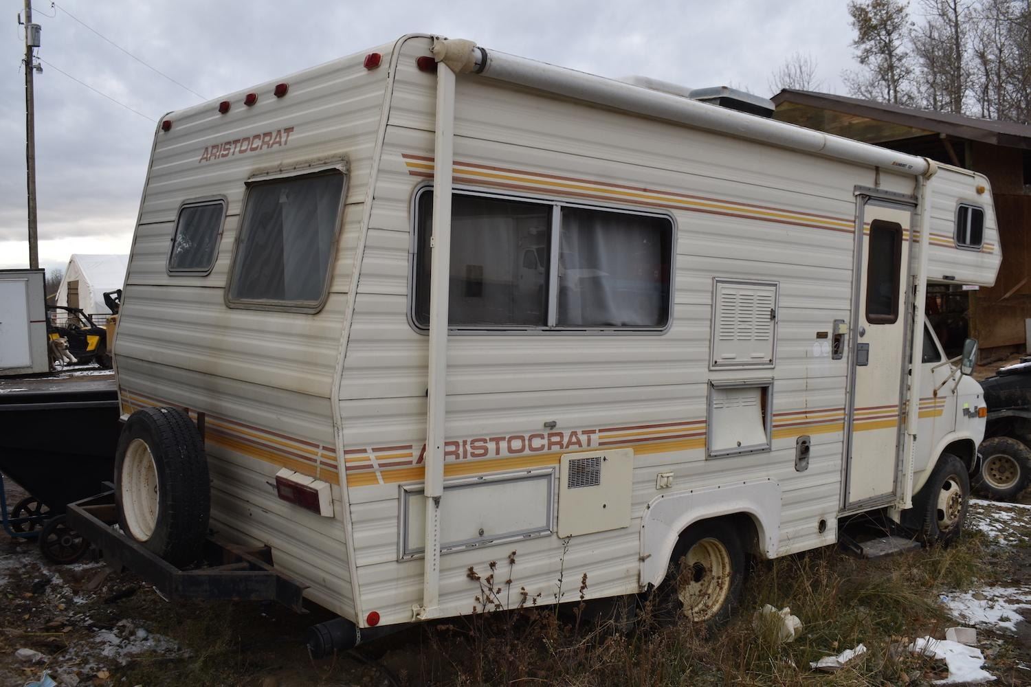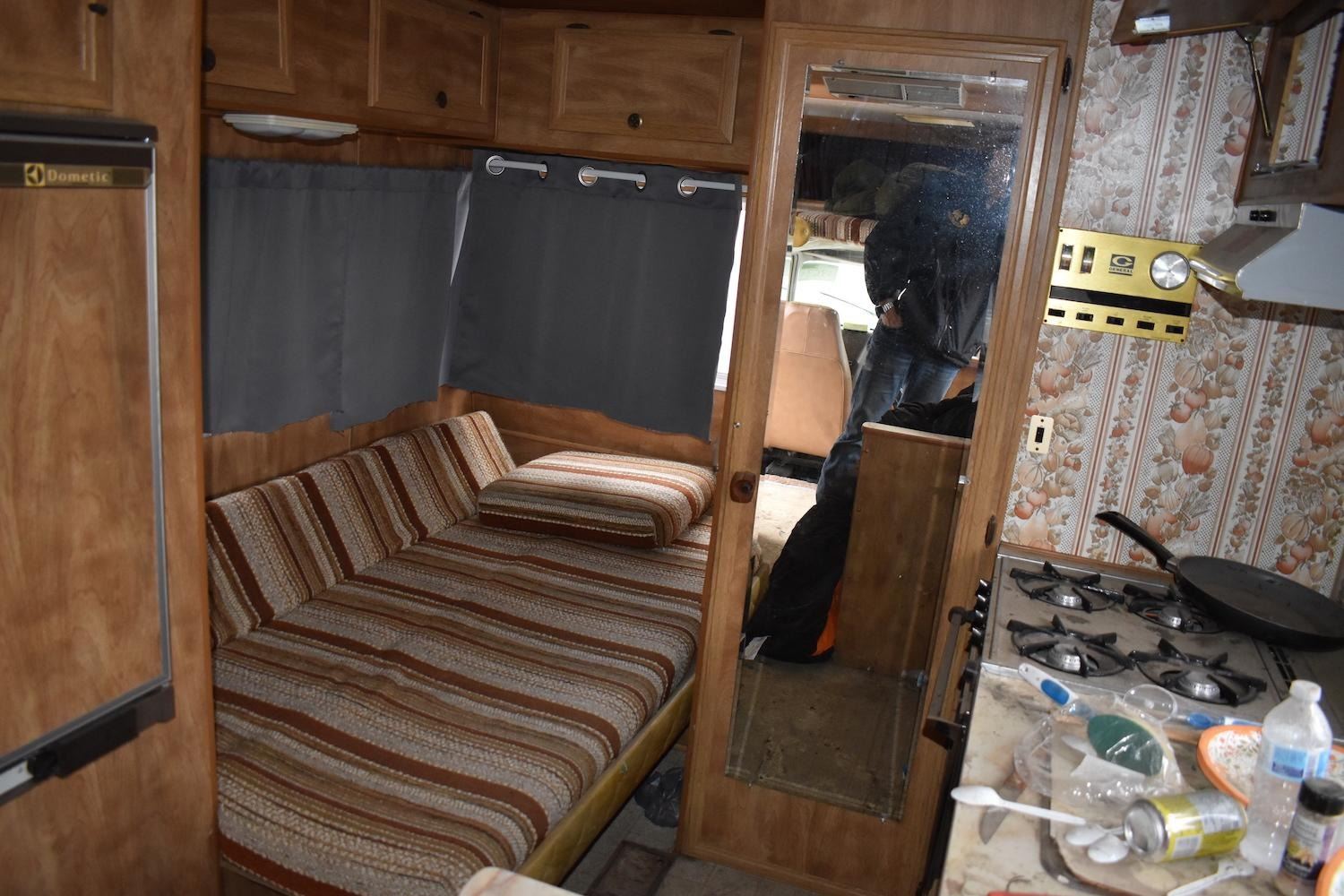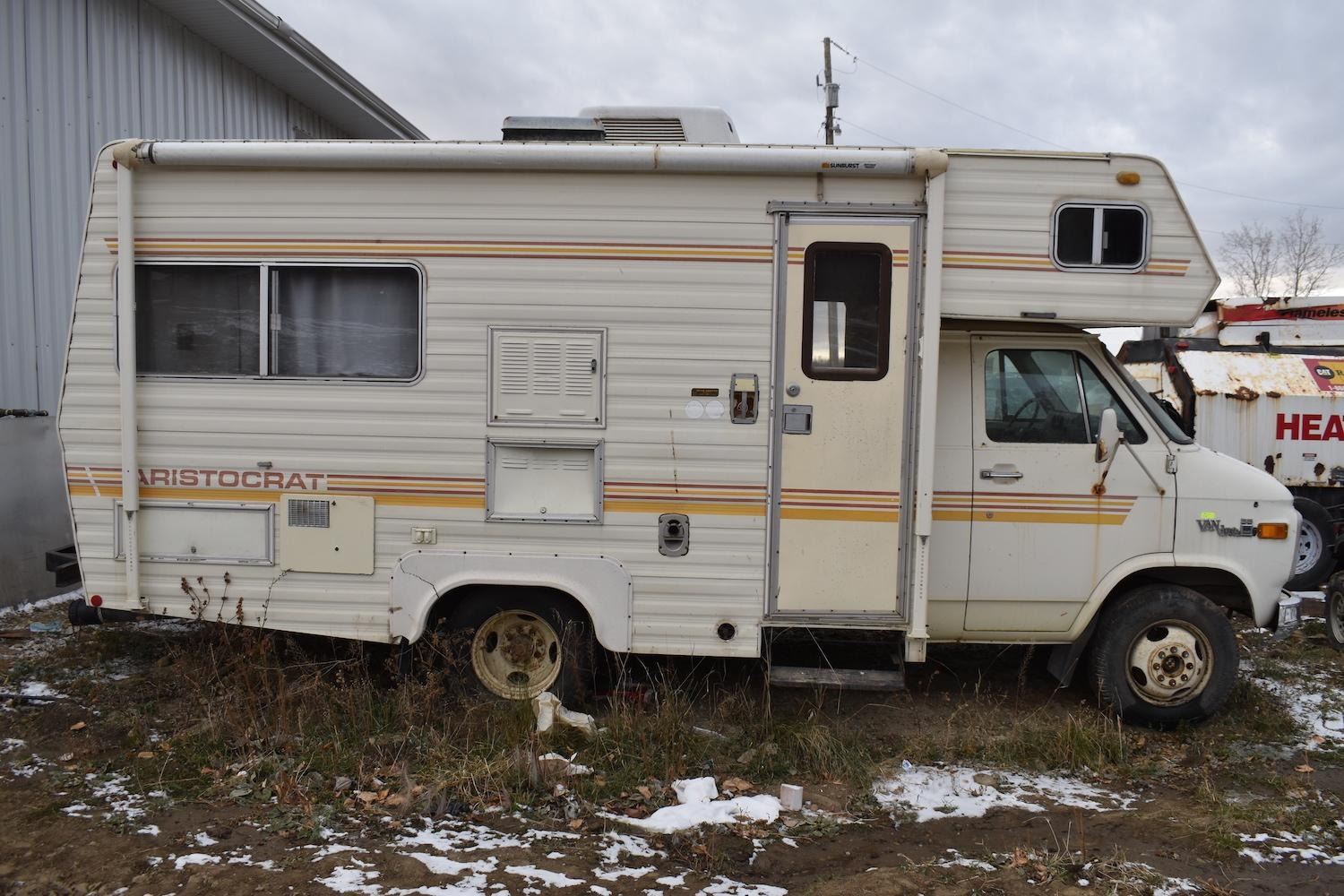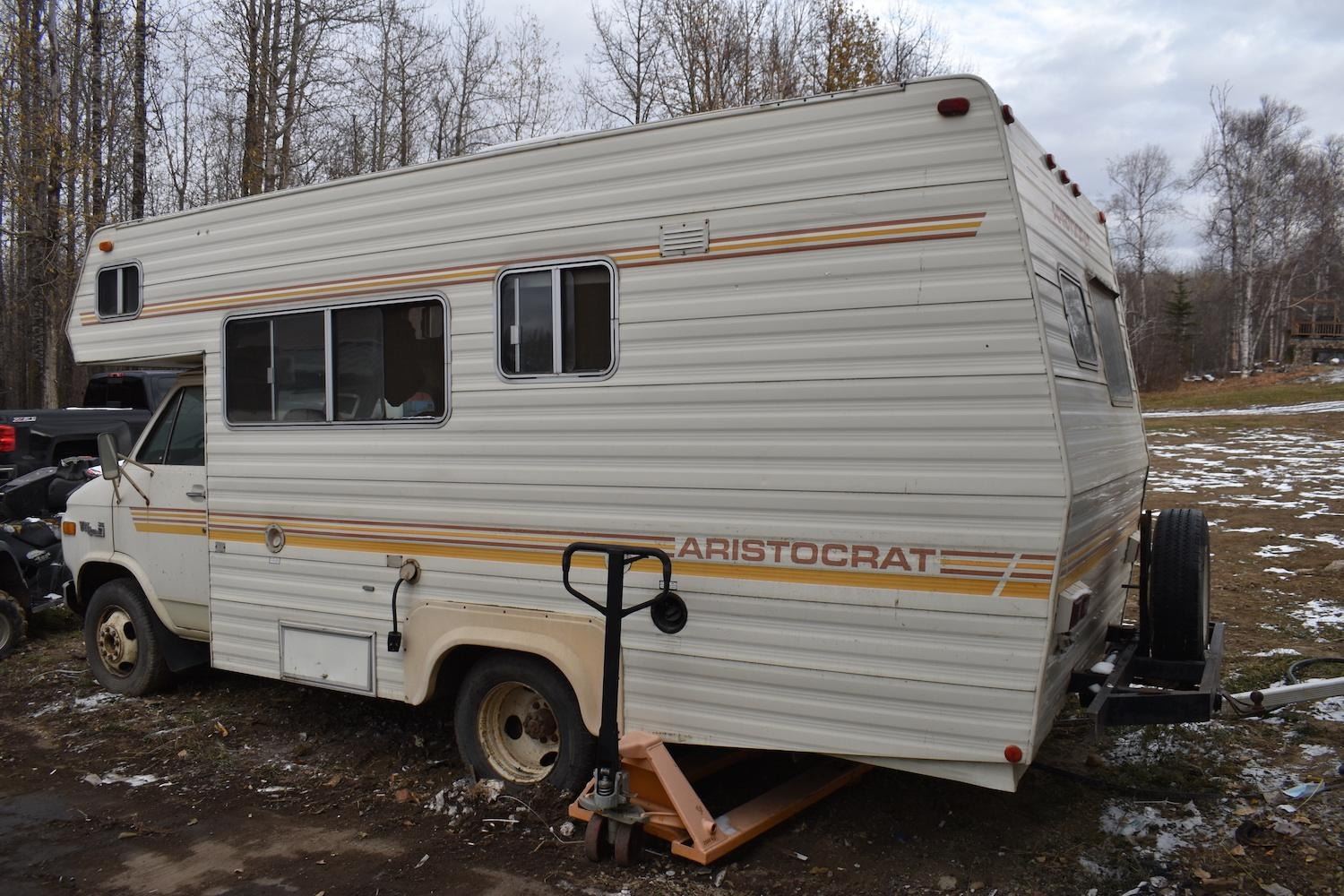CLASS C MOTORHOME 71,722 KM’S, 4037 KG GVWR, RM 460 GAS/ ELECTRIC FRIDGE, A/C, EVIDENCE OF ROOF LEAKS, FENDER SKIRT & EXTERIOR FRIDGE ACCESS DOOR DAMAGED, CORROSION ON EXTERIOR OF UNIT