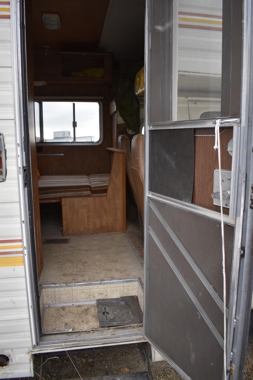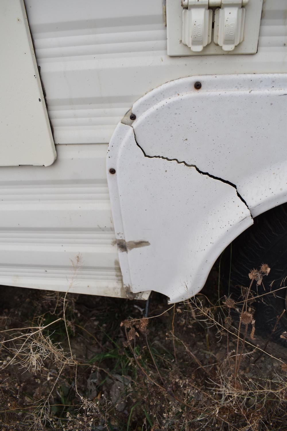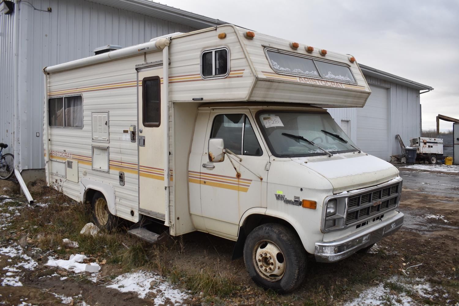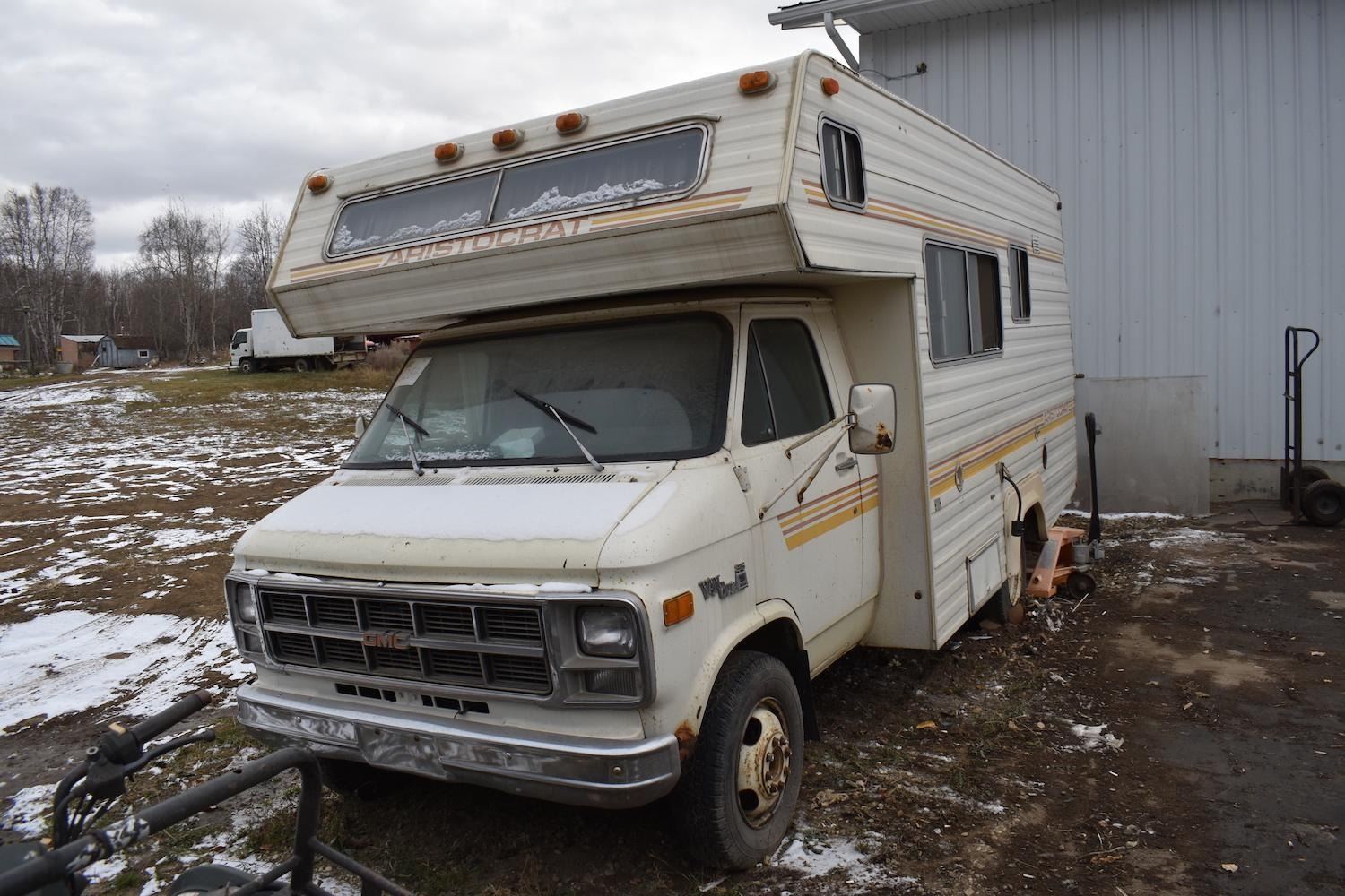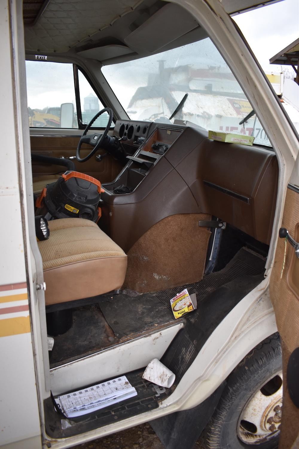 CLASS C MOTORHOME 71,722 KM’S, 4037 KG GVWR, RM 460 GAS/ ELECTRIC FRIDGE, A/C, EVIDENCE OF ROOF LEAKS, FENDER SKIRT & EXTERIOR FRIDGE ACCESS DOOR DAMAGED, CORROSION ON EXTERIOR OF UNIT