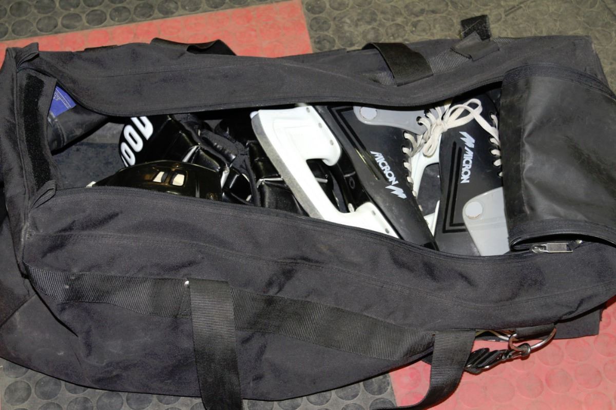 SKATES, CCM HELMET, SHERWOOD GLOVES AND PUCKS