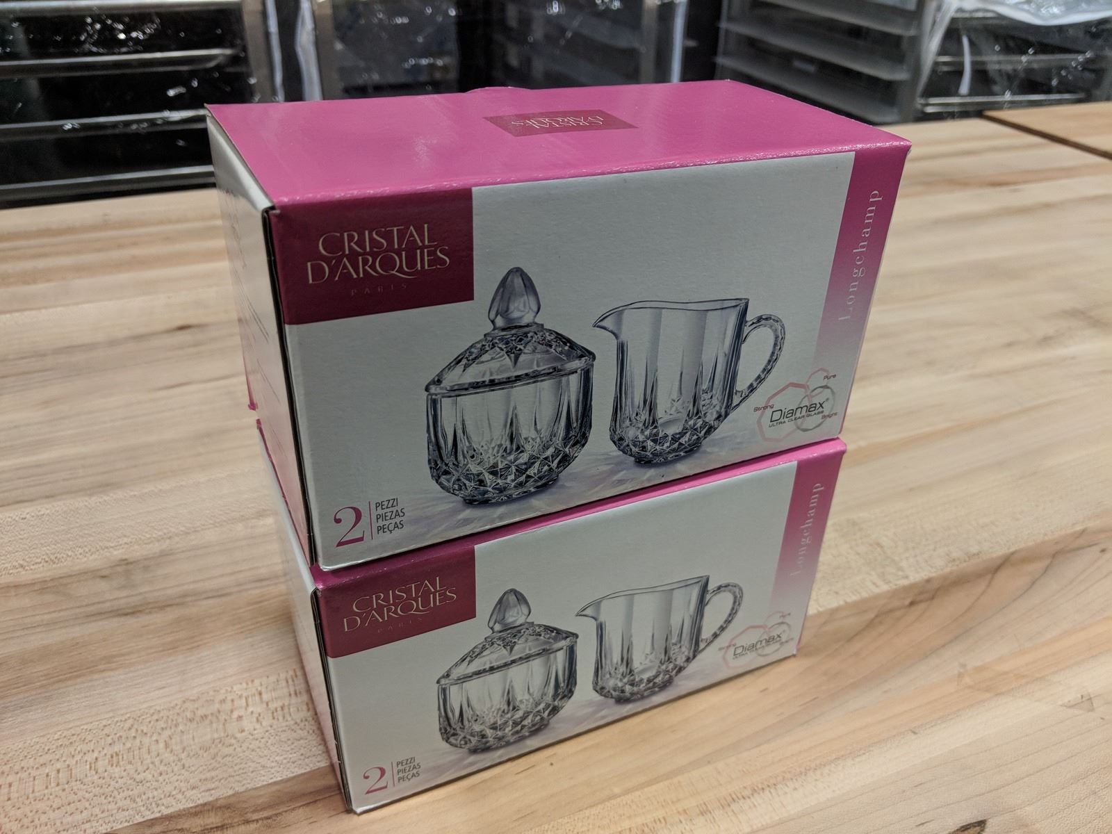 K649-J636 NEW CRISTAL D'ARQUES LONGCHAMP SUGAR & CREAMER SETS - LOT OF 2 SETS (4 PIECES)