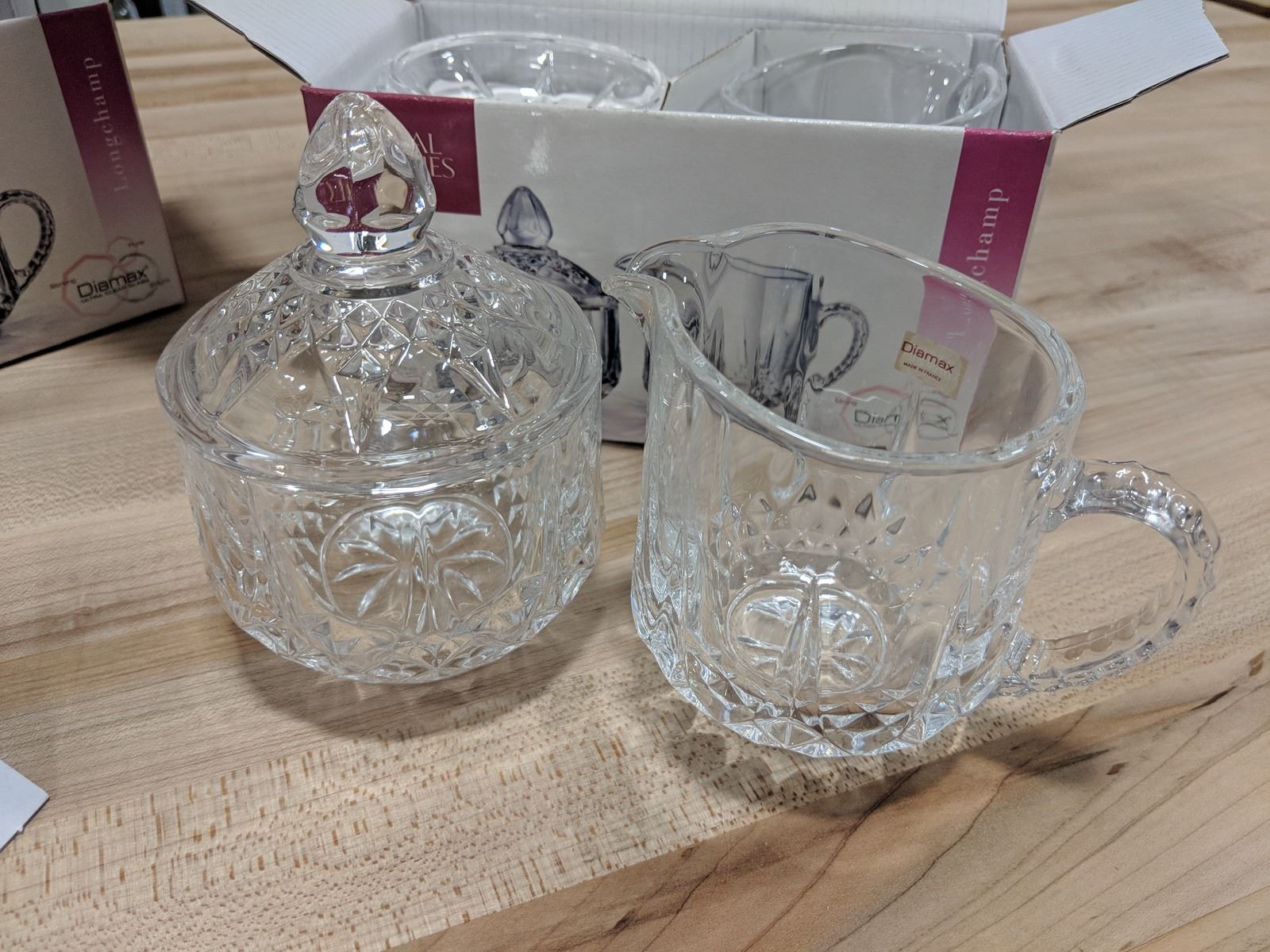 K648-J635 NEW CRISTAL D'ARQUES LONGCHAMP SUGAR & CREAMER SETS - LOT OF 2 SETS (4 PIECES)