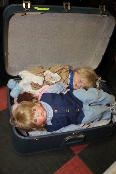 SUITCASE OF PORCELAIN DOLLS