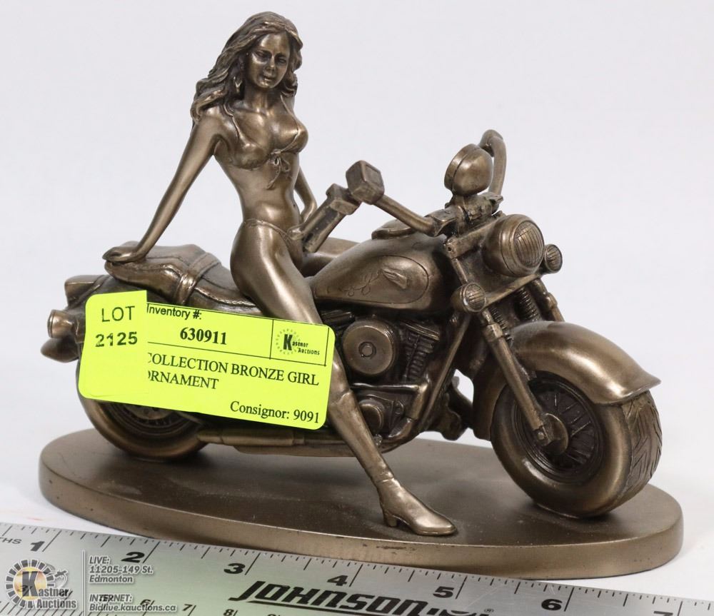 SUMMIT COLLECTION BRONZE GIRL ON BIKE ORNAMENT