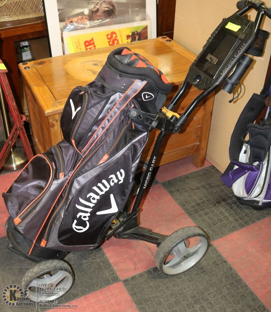 SUN MOUNTAIN 4 WHEEL GOLF CADDY WITH CALLAWAY BAG