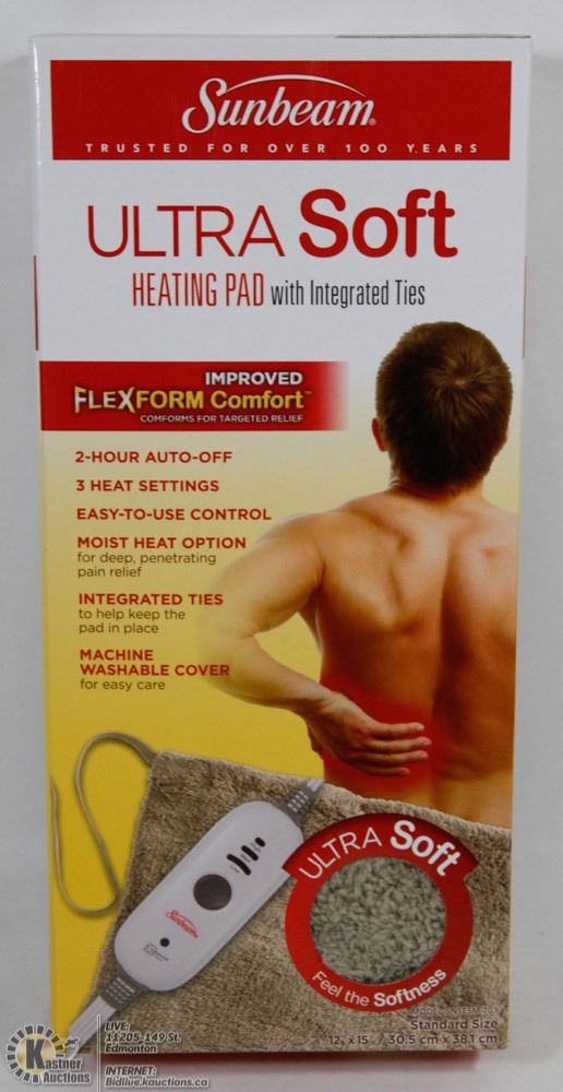 SUNBEAM ULTRA SOFT HEATING PAD WITH INTEGRATED TIES