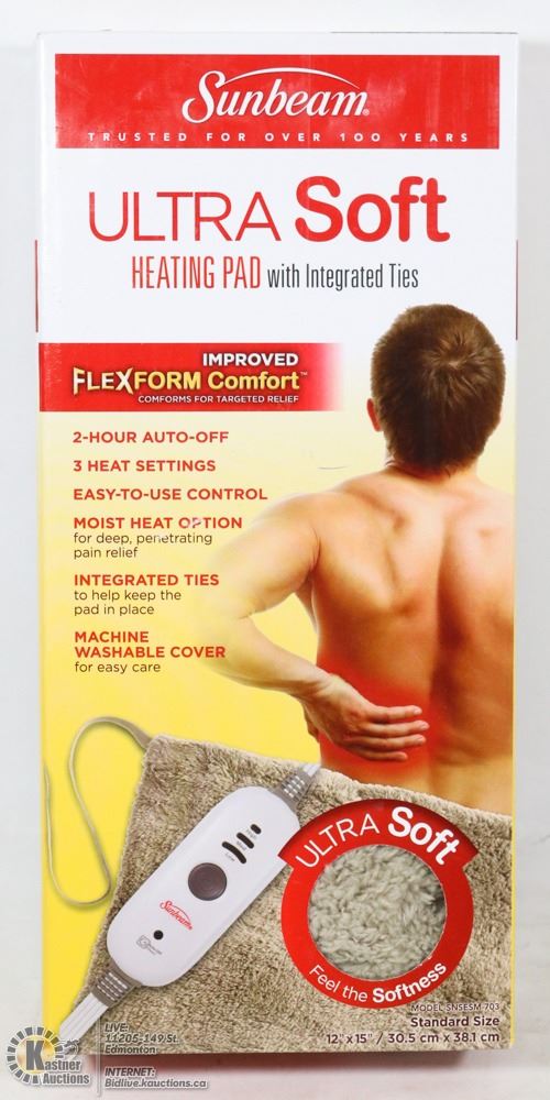 SUNBEAM ULTRASOFT HEATING PAD WITH INTEGRATED TIES