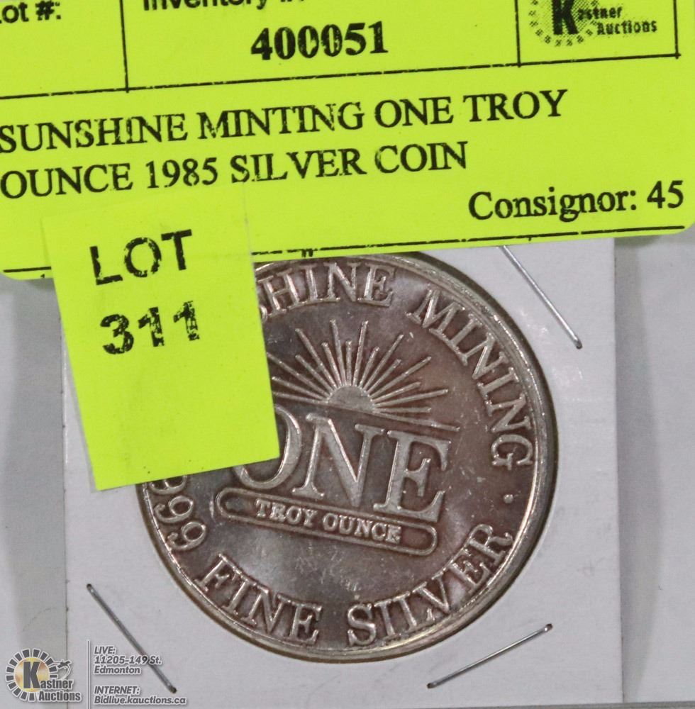 SUNSHINE MINTING ONE TROY OUNCE 1985 SILVER COIN