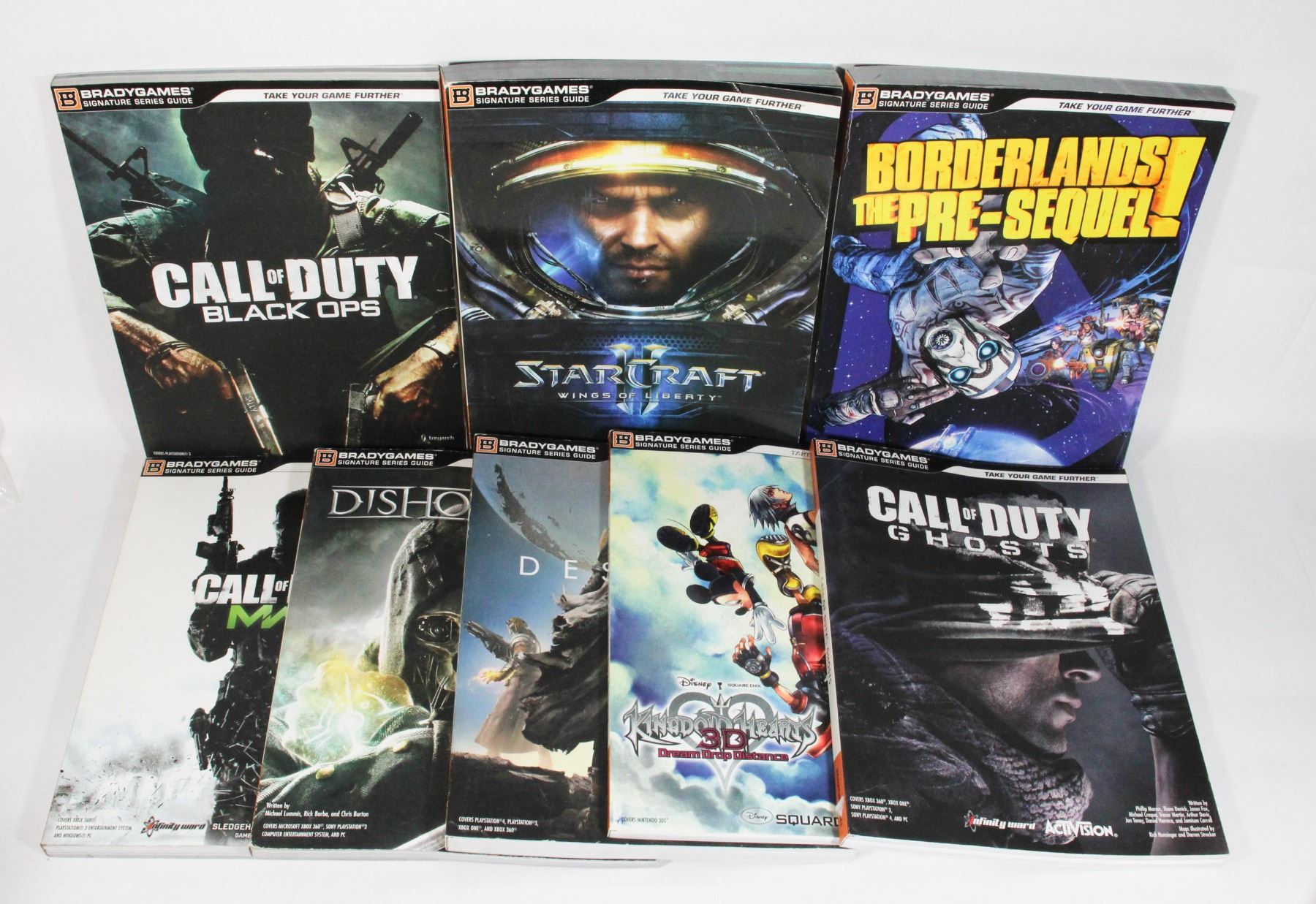DISHONORED ( XBOX 360, PS3, AND PC) BORDERLANDS THE PRE-SEQUEL! ( XBOX 360, PS3, AND PC) STARCRAFT WINGS OF LIBERTY ( PC AND MAC) CALL OF DUTY MW3 ( PS3, XBOX 360 AND PC )CALL OF DUTY BLACK OPS (PS3, XBOX 360, AND PC) CALL OF DUTY GHOSTS ( XBOX ONE, XBOX 360, PS3,PS4, AND PC) DESTINY ( PS4,PS3,XBOX ONE, XBOX 360) KINGDOM HEARTS 3D DREAM DROP DISTANCE ( NINTENDO 3DS)