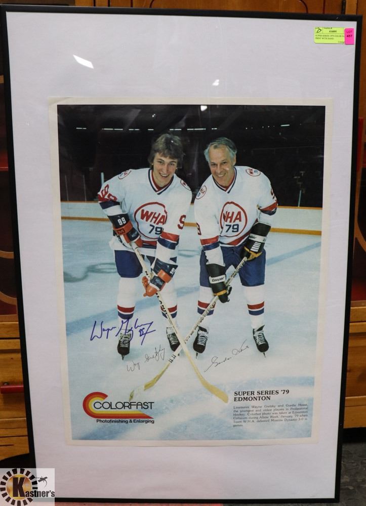SIGNED WAYNE GRETZKY AUTOGRAPH & BOTH WAYNE AND GORDIE HOWE LITHOGRAPH SIGNATURE. COLLECTIBLE. SPORTS.