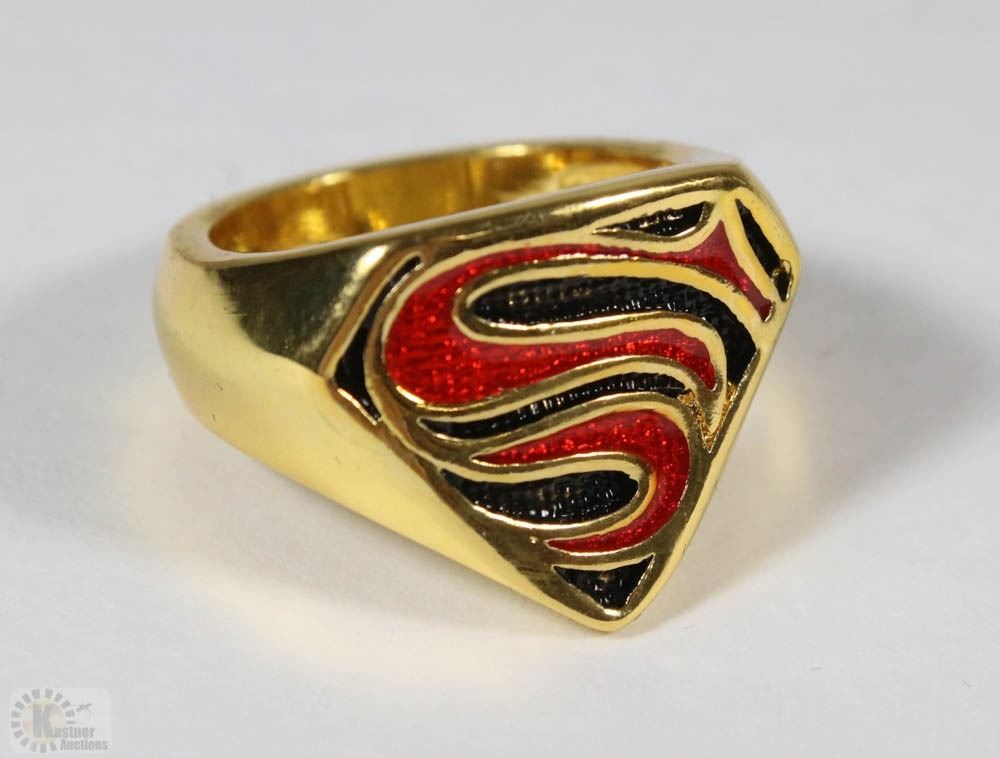 SUPERMAN LOGO GOLD TONE RING SZ10