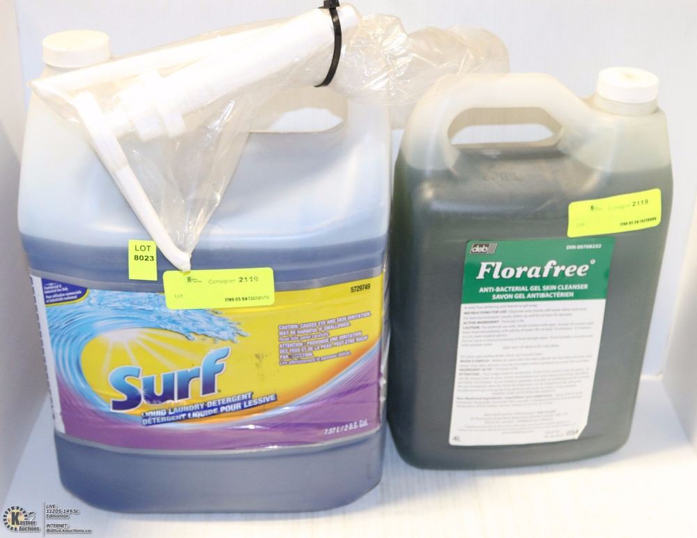 DETERGENT COMES W/ HAND PUMP(7.57L), FLORAFREE ANTIBACTERIAL GEL SKIN CLEANER(4L)