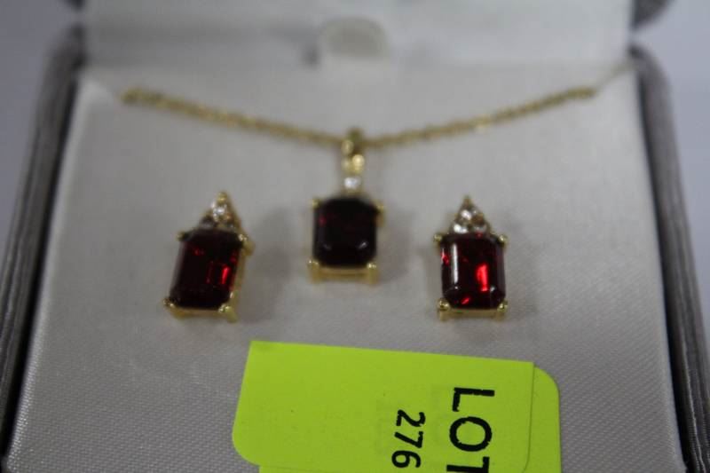 SYNTHETIC RUBY EARRING AND NECKLACE SET