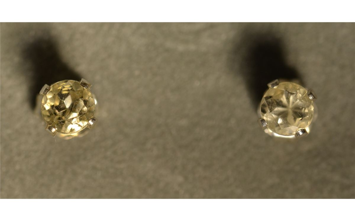 Sterling Slver Stud Earrings with Very Pale Clear Yellow Citrine, Circular