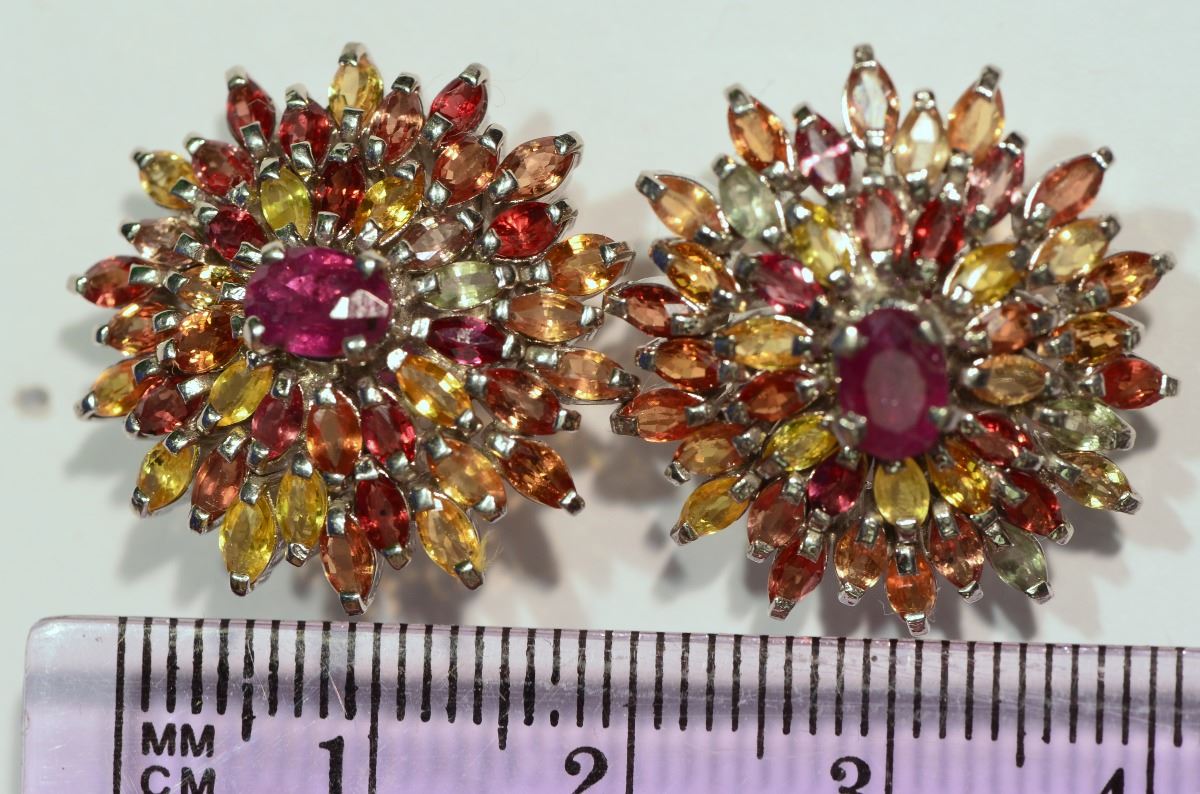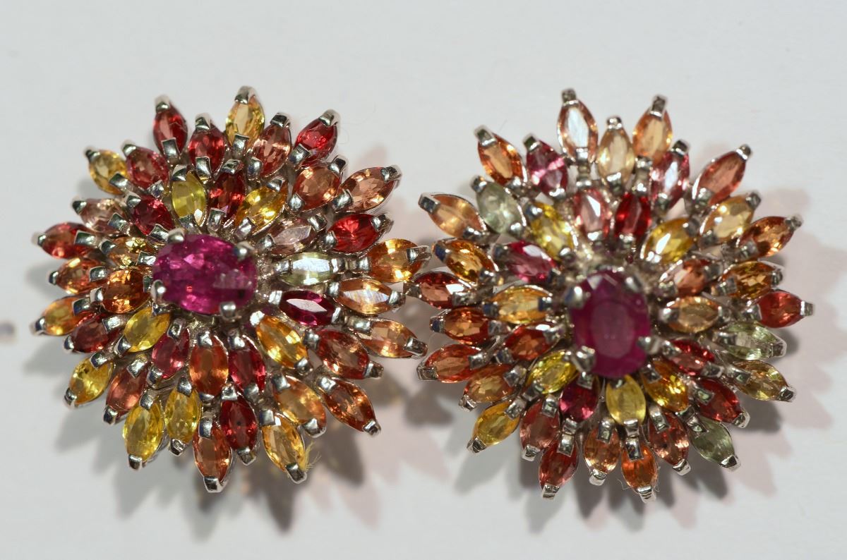 1 Ruby Surounded by Multi Coloured Sapphires on Each Earring MSRP $2150.00