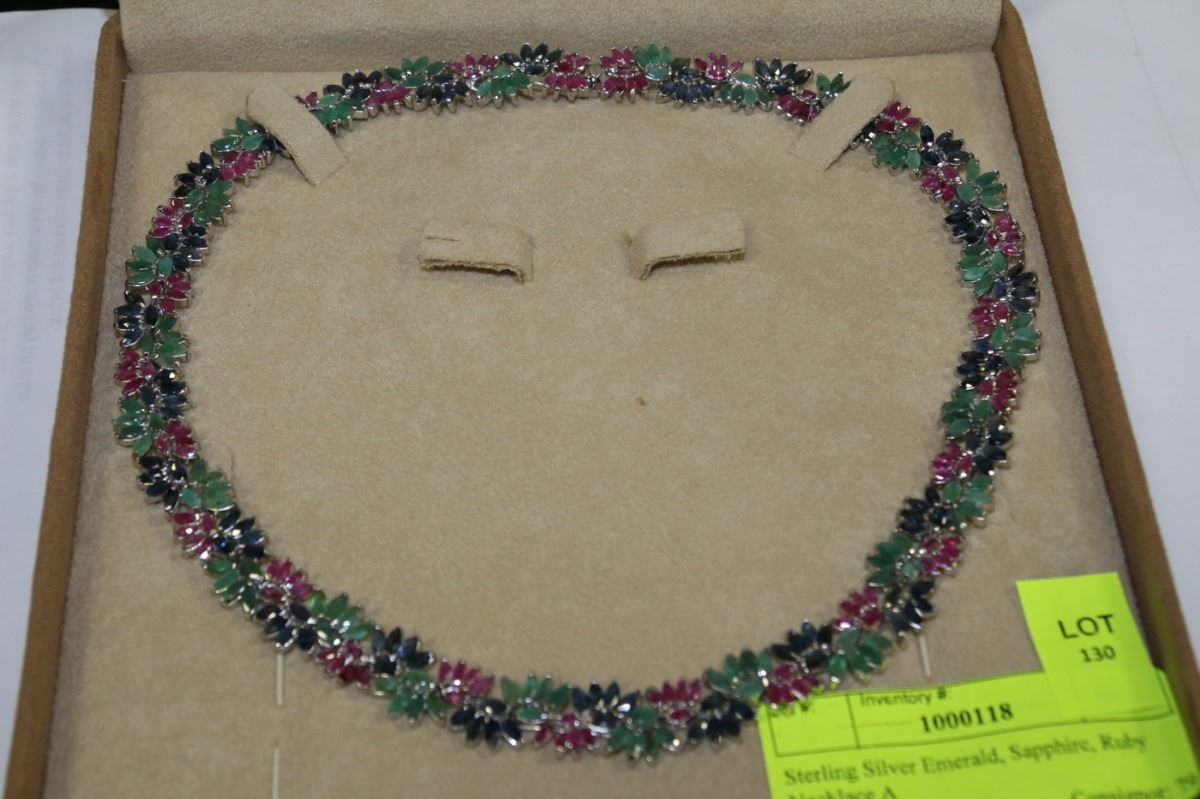 Neckalce set with numerous leaf pattern rubies, emeralds and sapphires (30.0ct for all stones) Appraised $6800
