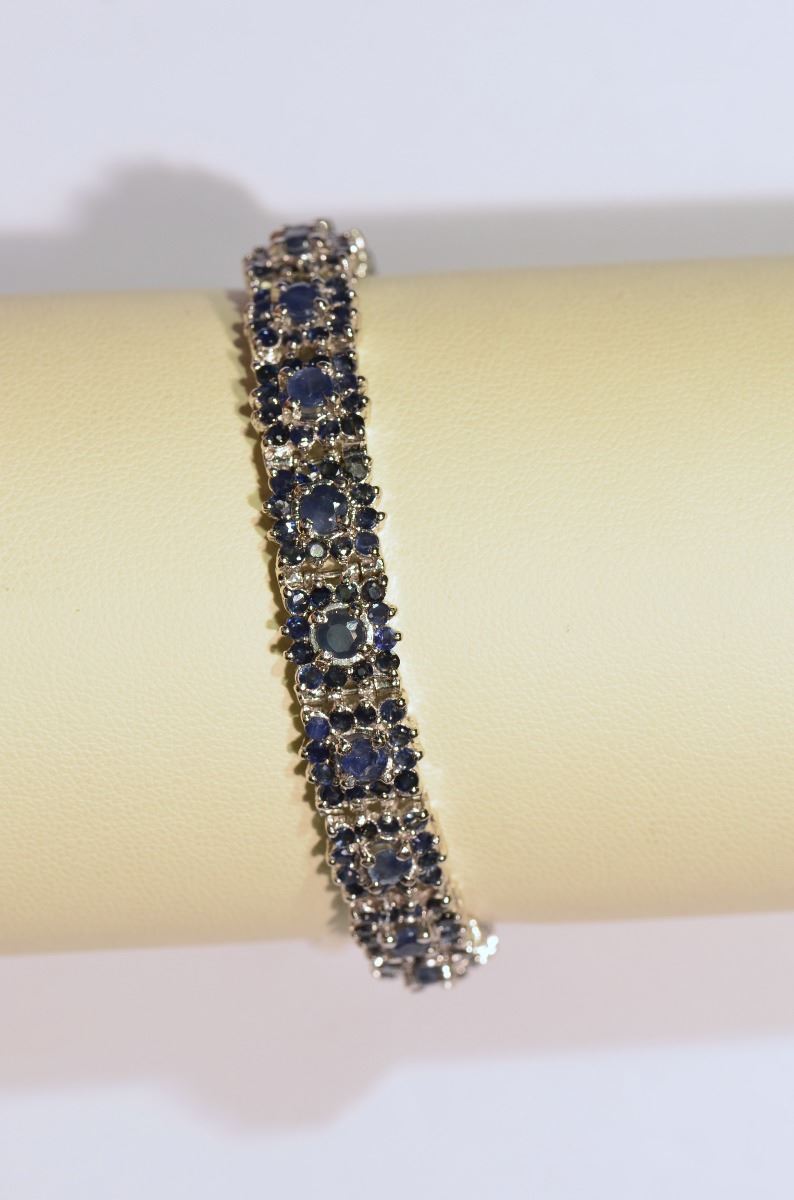 Bracelet with 19 medium sized Sapphire sStones, each Sapphire is surrounded by 12 small Sapphires