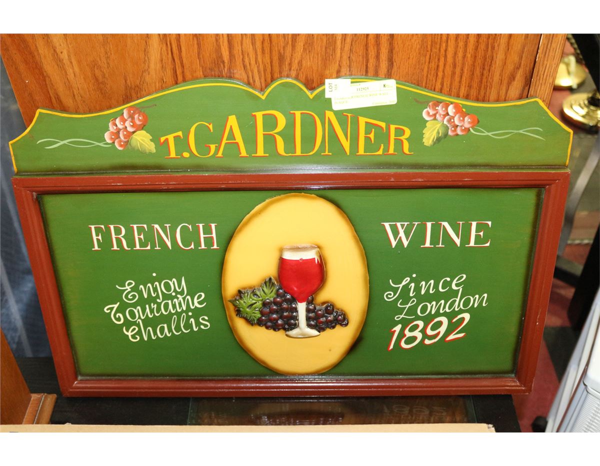 T.GARDNER FRENCH WINE WALL PLAQUE
