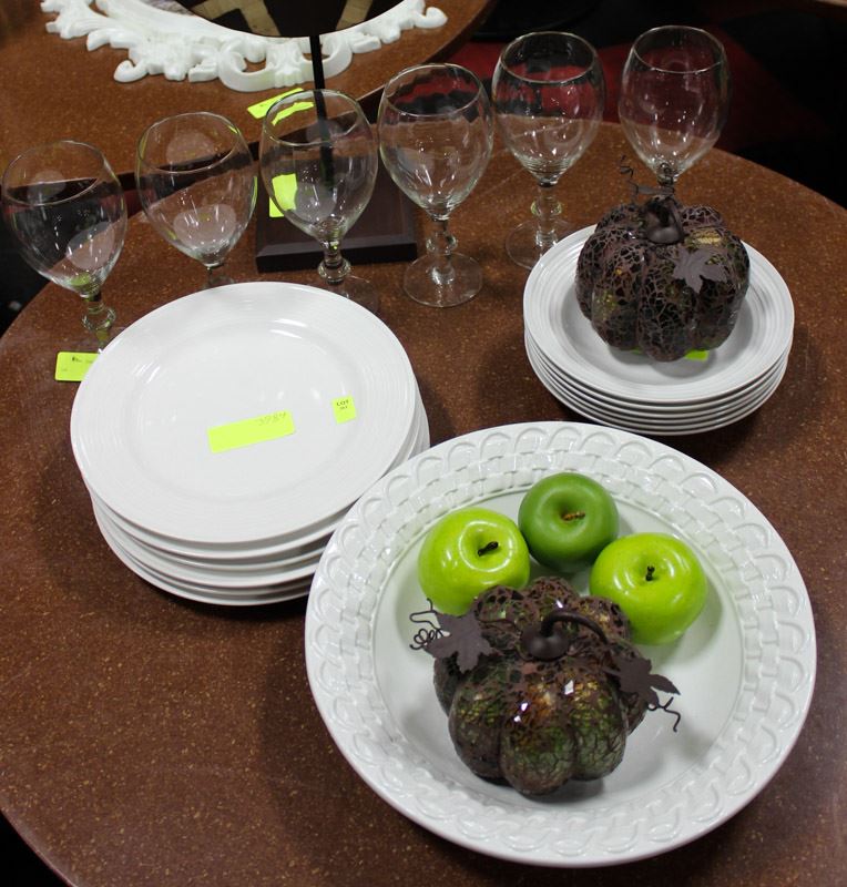 TABLE LOT OF SHOWHOME DISHES & GLASSWARE  ETC.