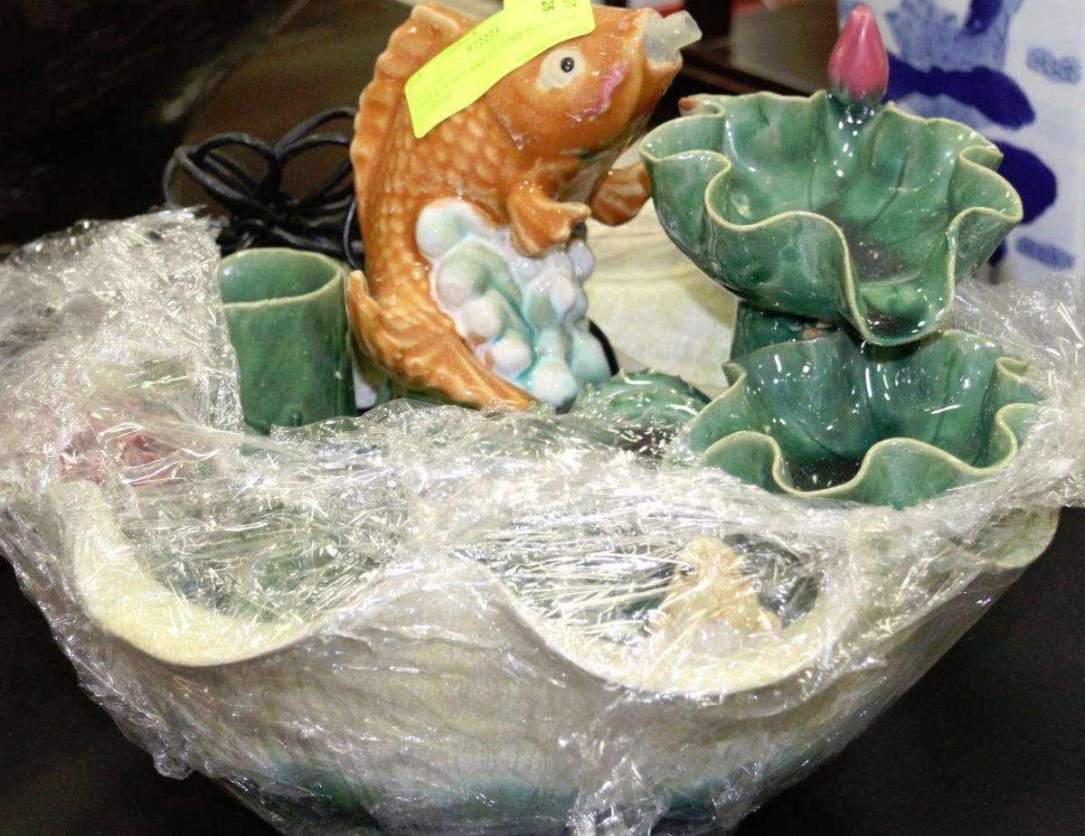 TABLE TOP CARVED FISH FOUNTAIN 14" WIDE