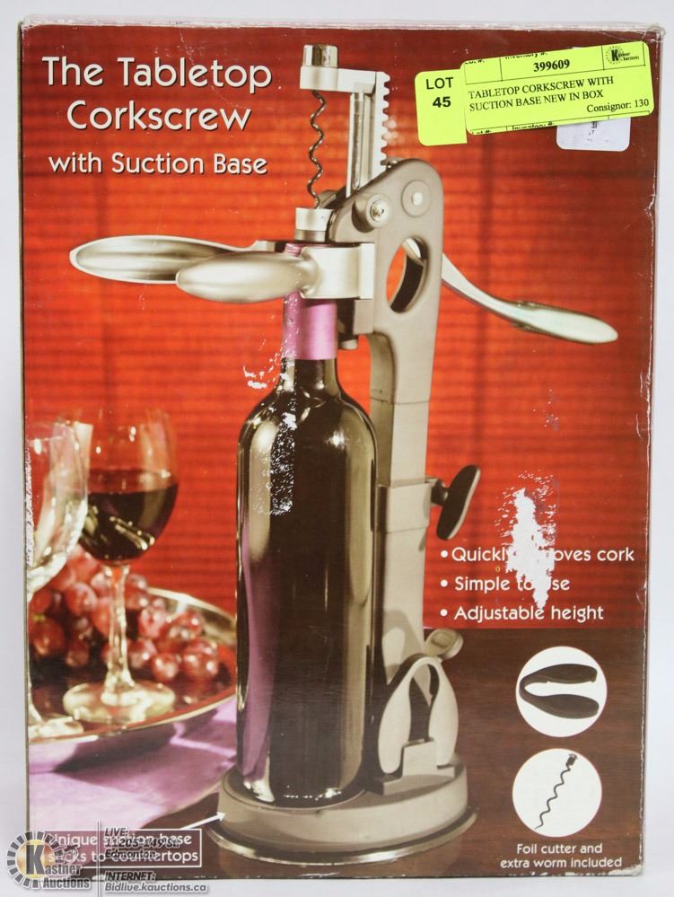 TABLETOP CORKSCREW WITH SUCTION BASE NEW IN BOX