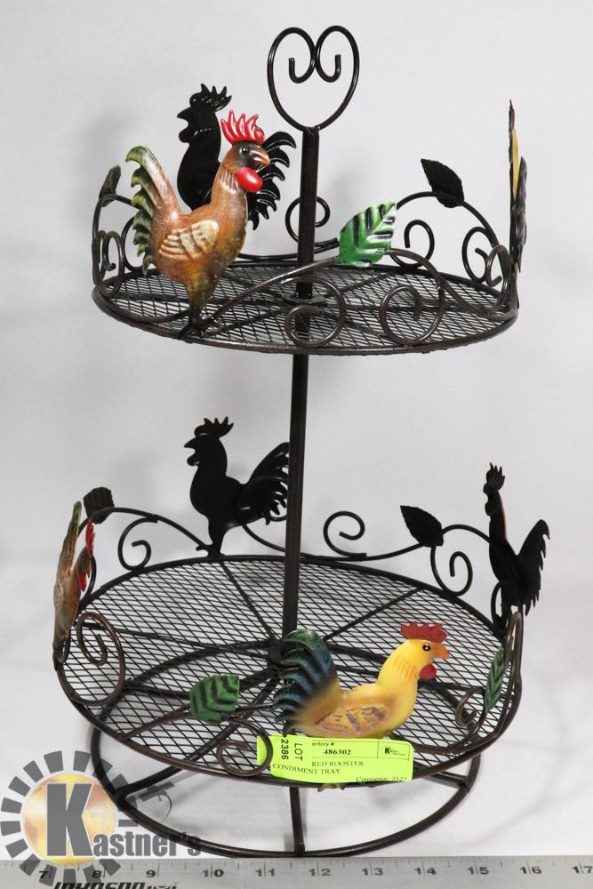 WROUGHT IRON, COLOURED ROOSTERS AROUND