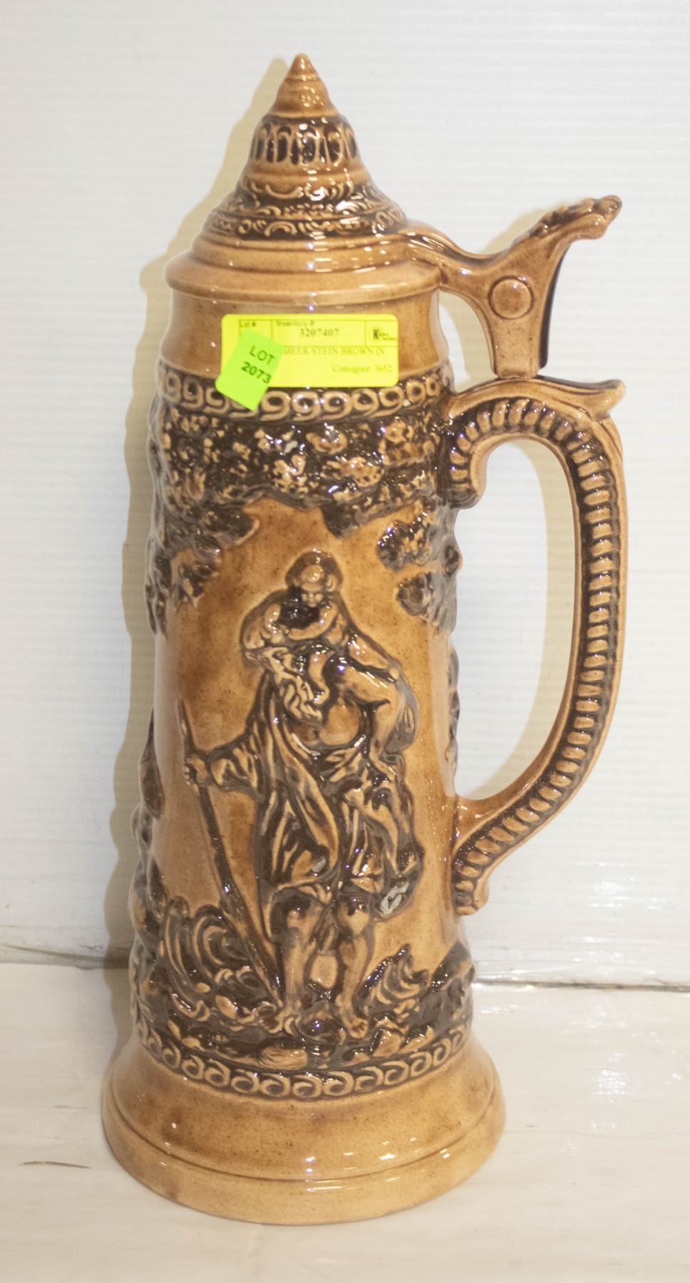 TALL GERMAN BEER STEIN BROWN IN COLOUR