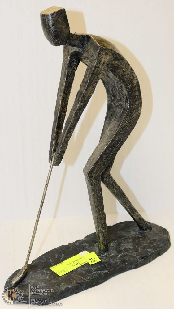 MAN GOLFING STATUE DARK GREY IN COLOR