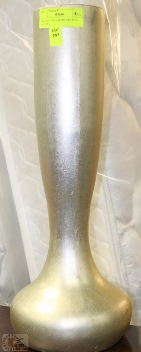 TALL SILVER LEAF DECORATIVE VASE 19"