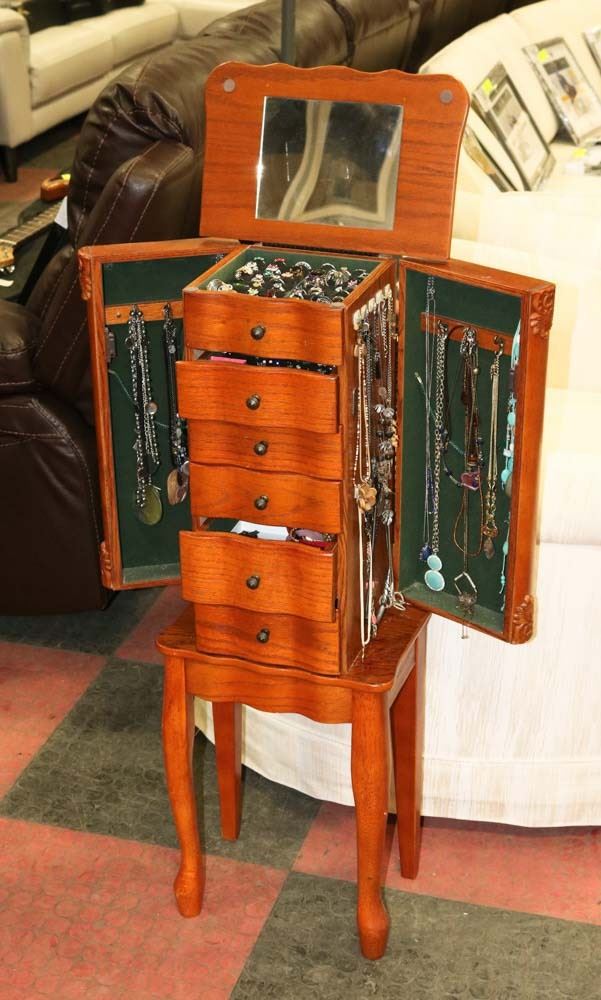 . 6 COMPARTMENT FILLED WITH RINGS PENDANT SETS, EARRINGS, BRACELETS, PINS AND MUCH MORE. JEWELLERY. FURNITURE.