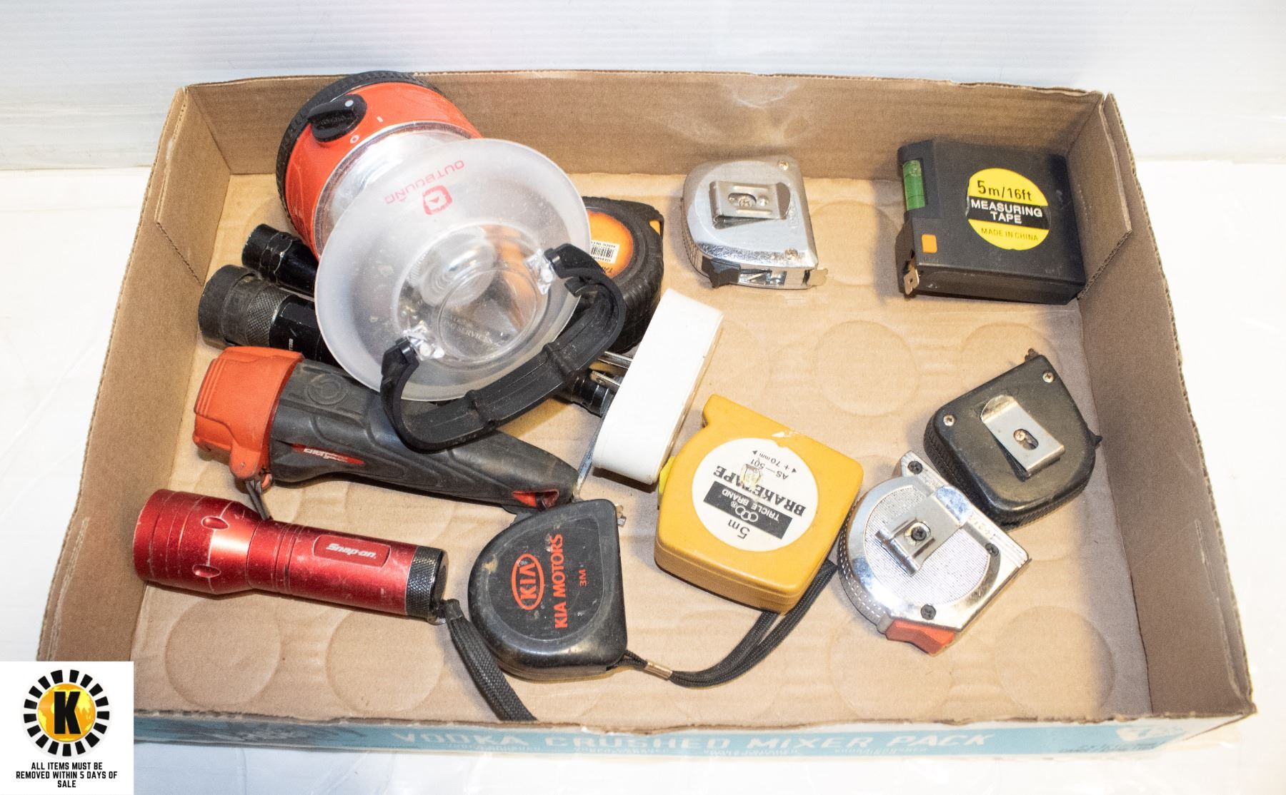 TAPE MEASURES, FLASHLIGHTS AND CAMPING LIGHT