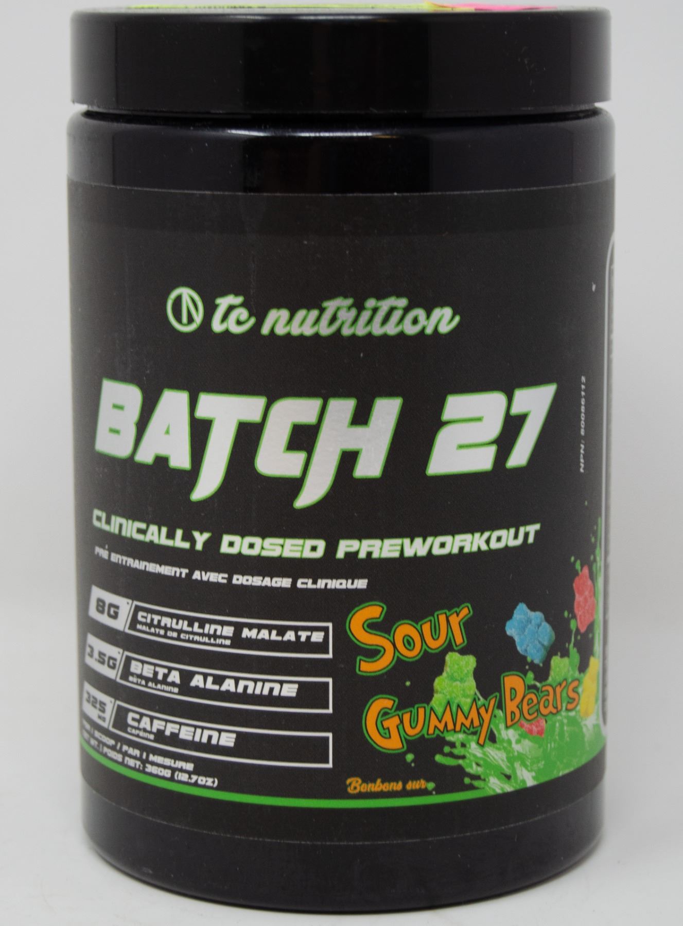 SOUR GUMMY BEARS FLAVOUR. 360G. 8G CITRULLINE MALATE, 3.5G BETA-ALANINE, & 325MG CAFFEINE PER 1 SCOOP. EXP 11/2022