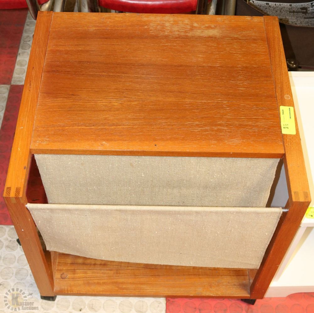 TEAK END TABLE ON WHEELS