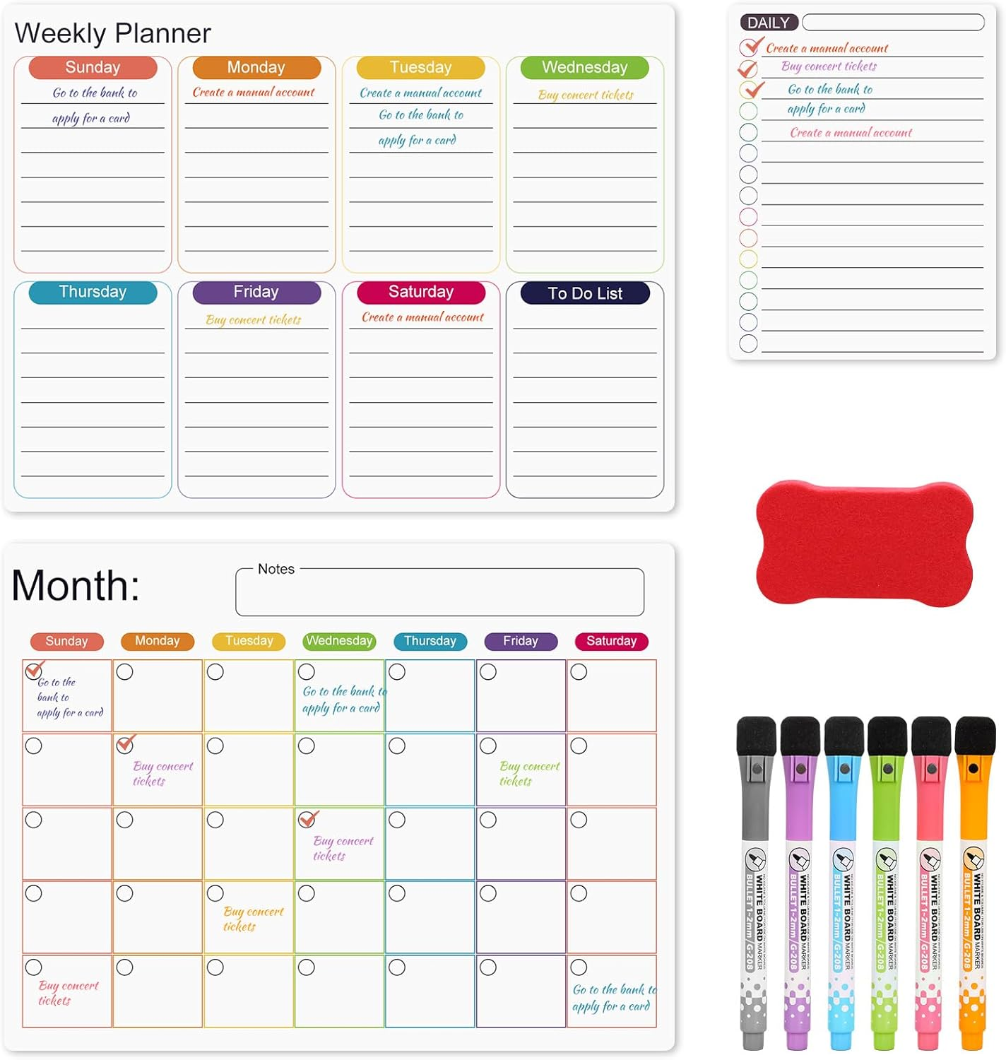 TEFOLA MAGNETIC FRIDGE CALENDAR,MAGNETIC DRY ERASE CALENDAR SET MONTHLY WEEKLY DAILY WHITEBOARD WITH 6 PENS AND 1 ERASE FOR REFRIGERATOR PLANNING BOARDS FOR KITCHEN