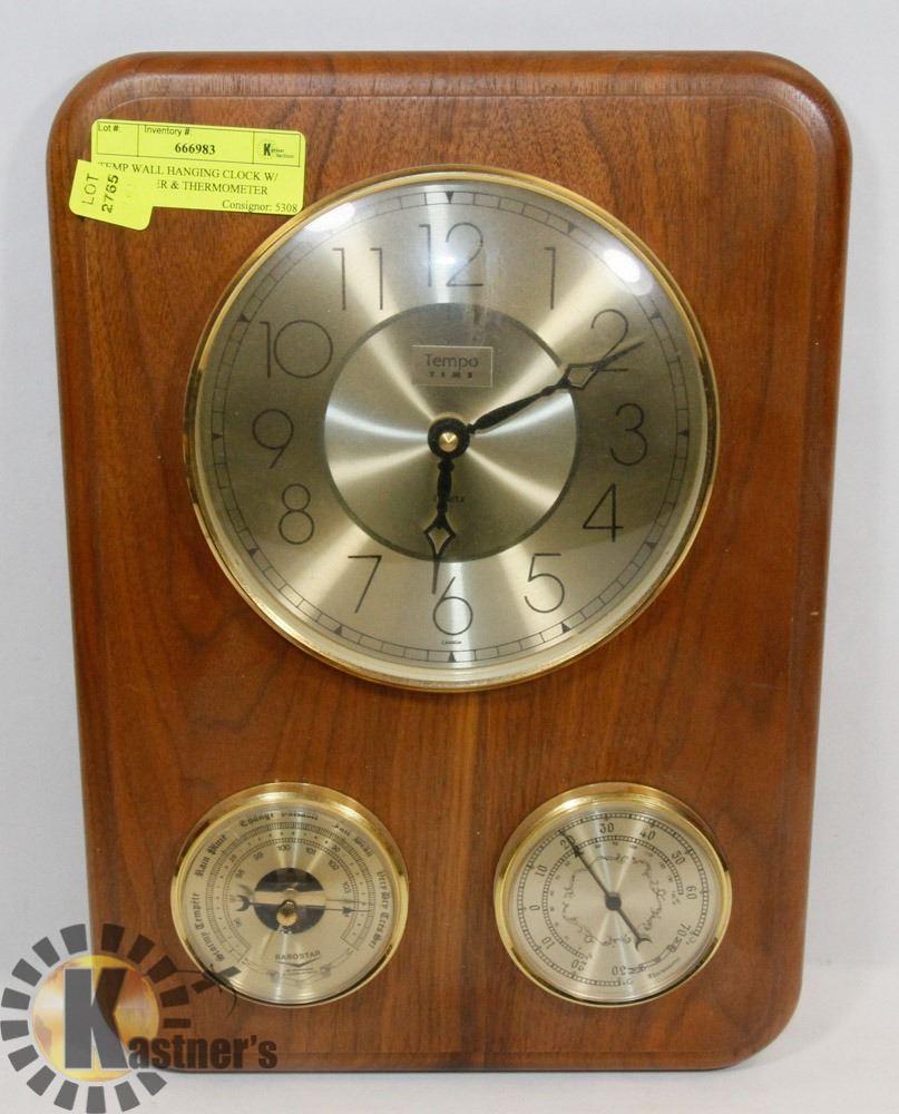 TEMP WALL HANGING CLOCK W/ BAROMETER & THERMOMETER