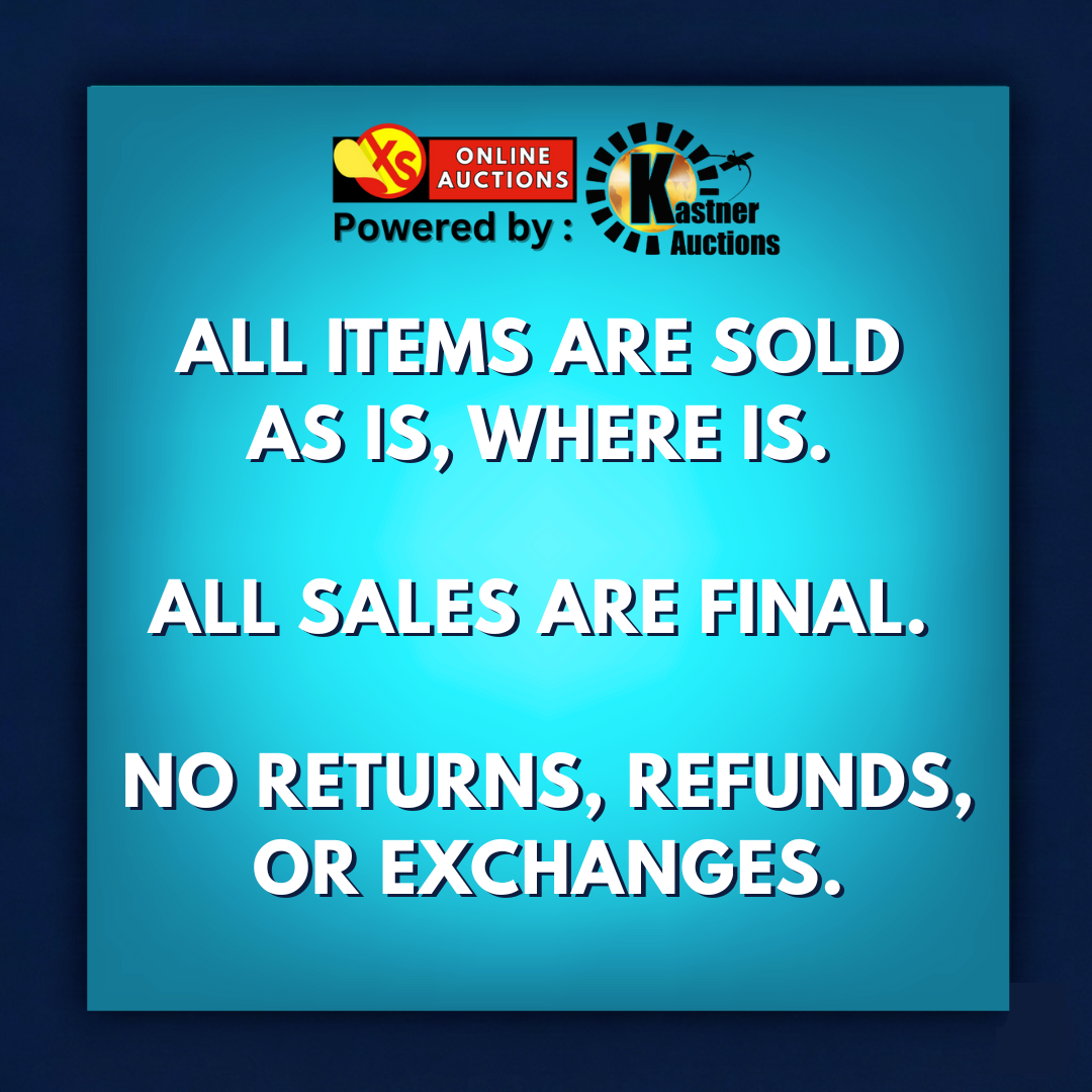 Please take advantage of in person preview as all items are sold "As Is, Where Is". No sale shall be invalidated by any reason or defect or inaccuracy of description in listing or otherwise, and no liability shall be borne by the auctioneers by virtue of any such fault or error. All sales final.