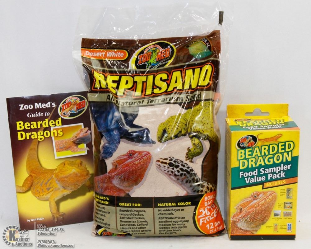 SAMPLE PACK, 12LB BAG OF SAND, AND GUIDE TO BEARDED DRAGONS