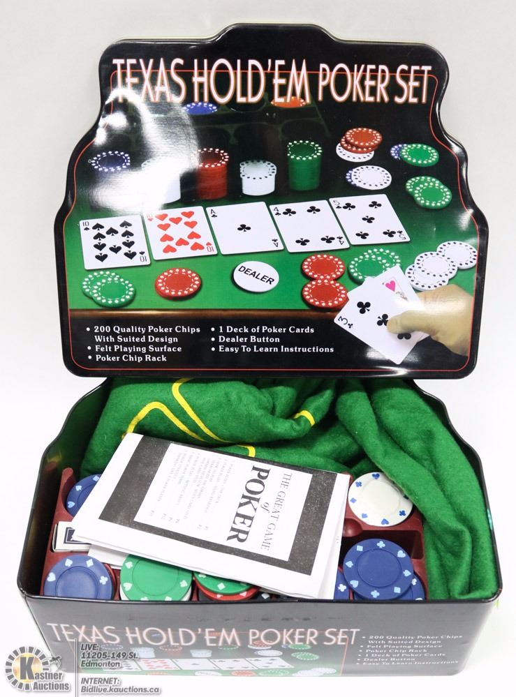 INCLUDES 200 POKER SHIPS, FELT PLAYING SURFACE, POKER SHIP RACK, 1 DECK OF CARDS, DEALER BUTTON, AND INSTRUCTIONS