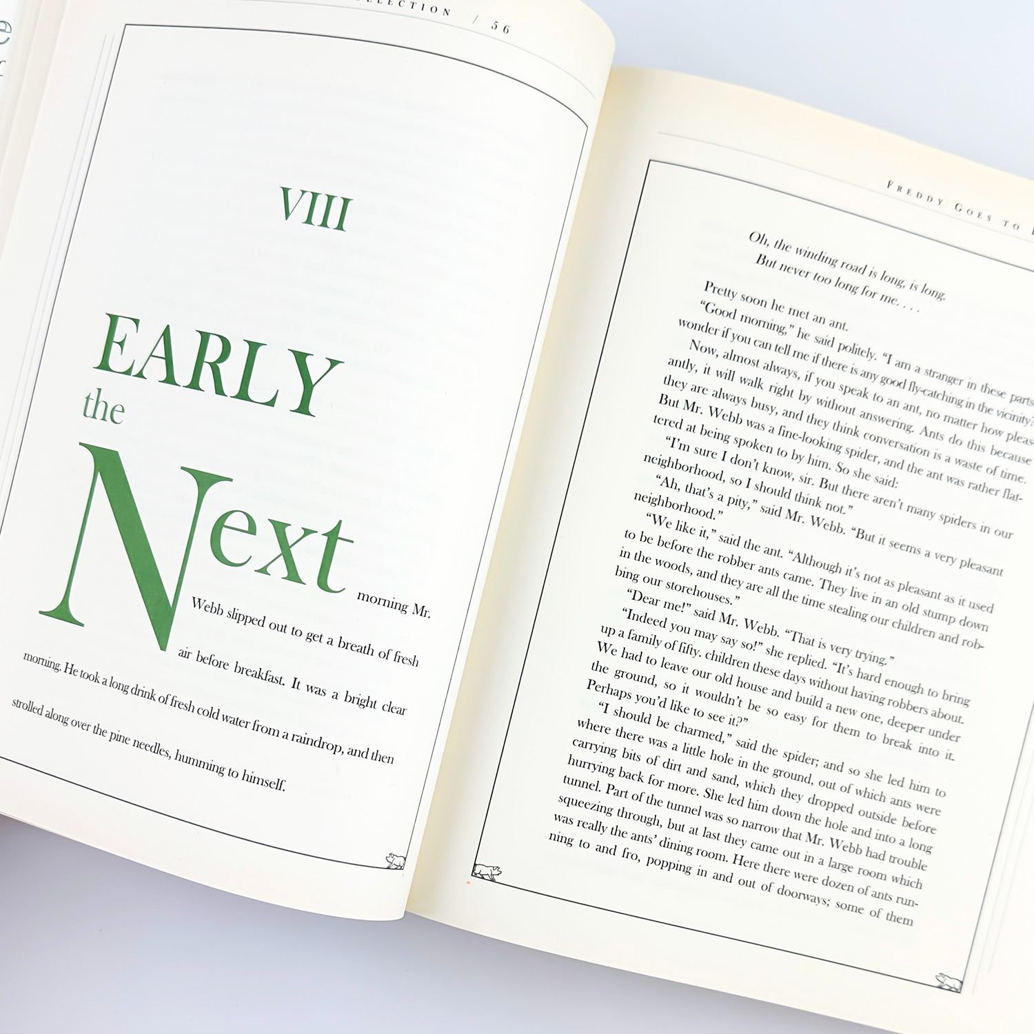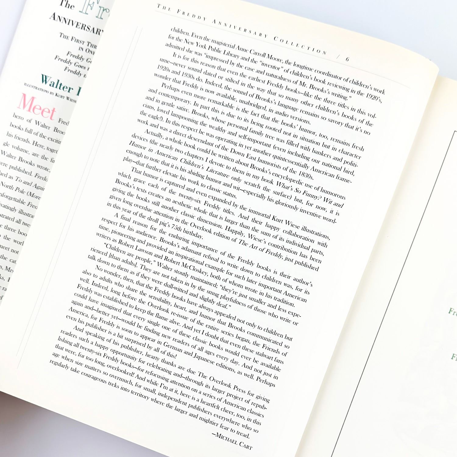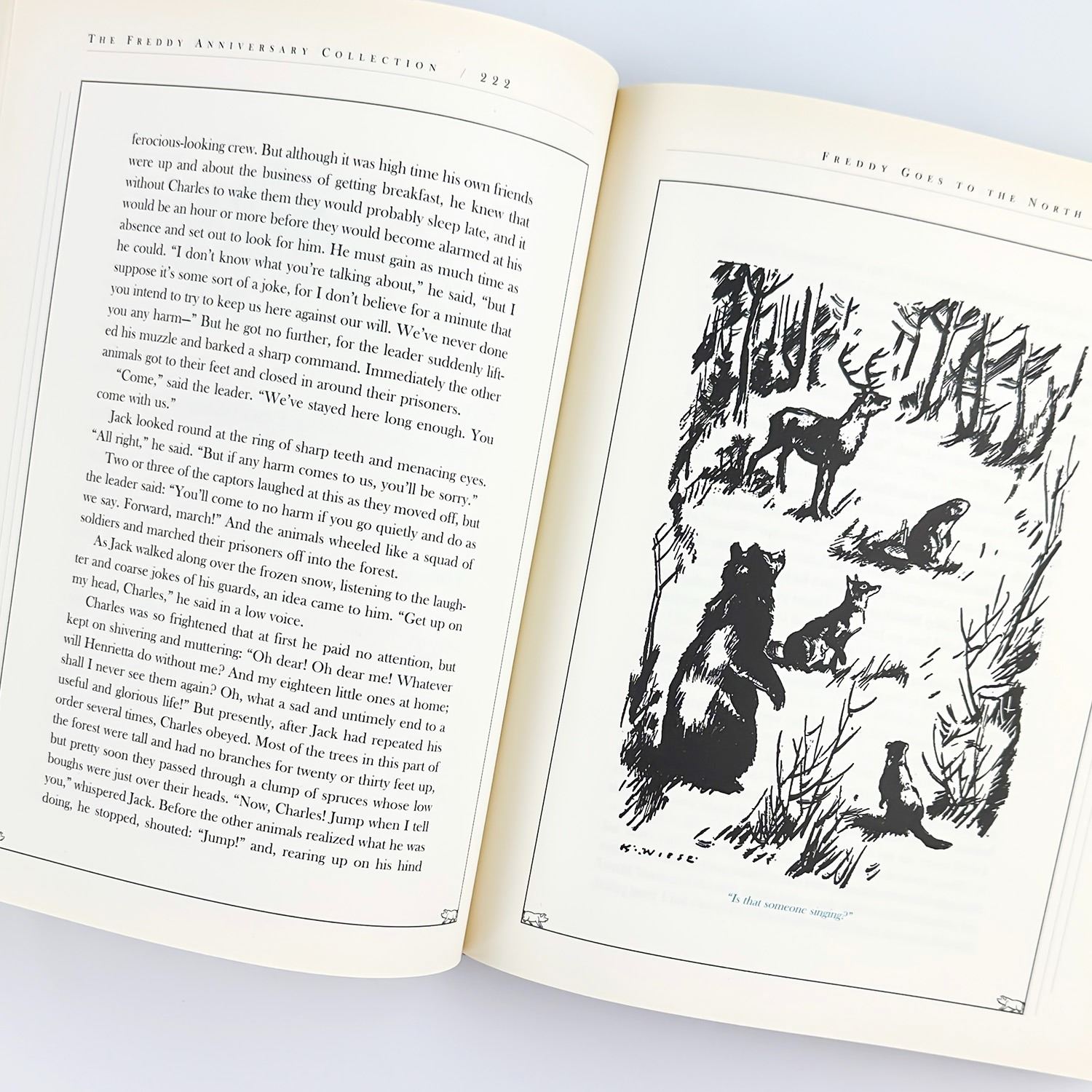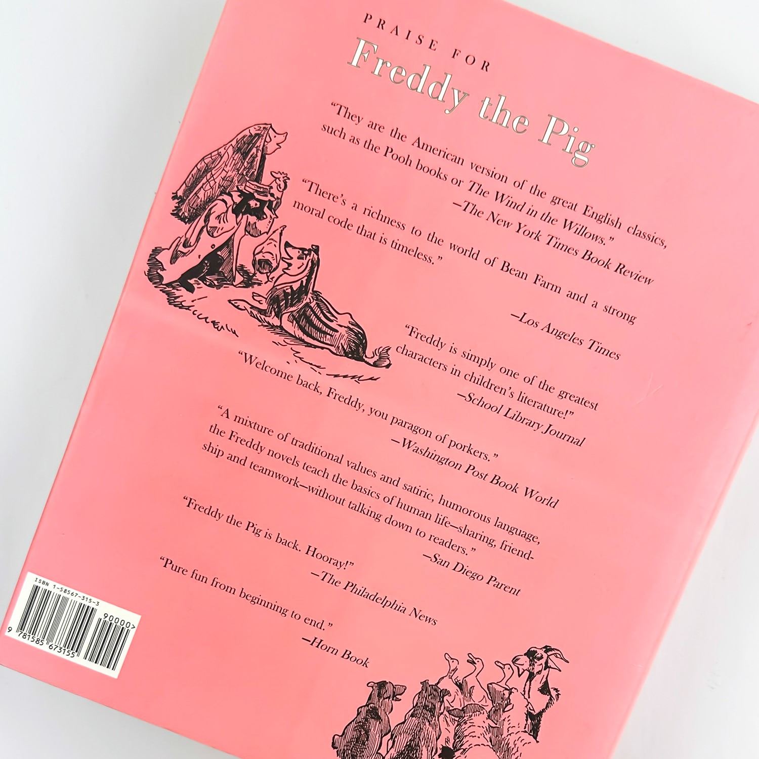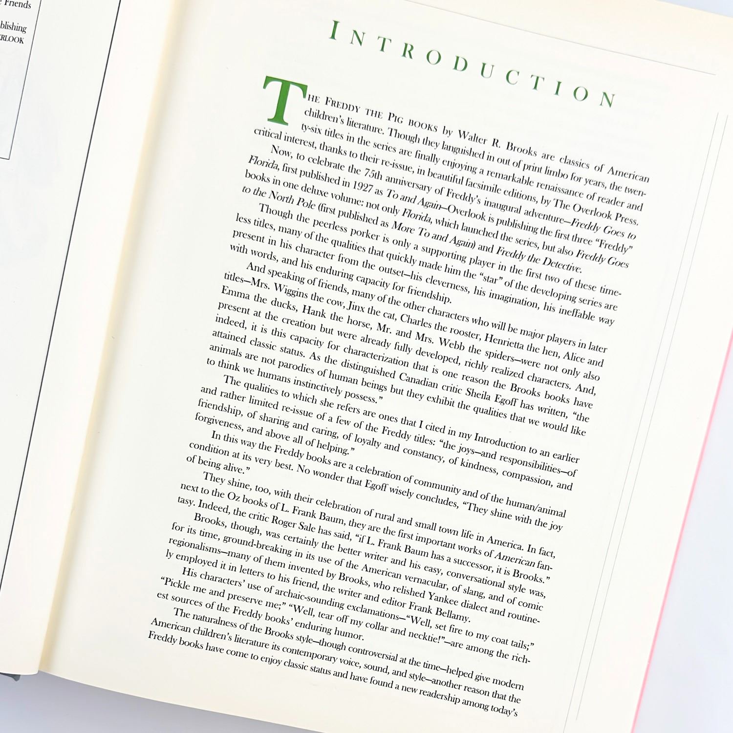 #9085 - THREE FREDDY BOOKS IN ONE VOLUME! BY WALTER R. BROOKS. FREDDY GOES TO FLORIDA, FREDDY GOES TO THE NORTH POLE, FREDDY THE DETECTIVE. HARDCOVER WITH DUST JACKET - COPYRIGHT 2002 - 432 PAGES. MEASURES: 10.25” (26 CM) BY 8.25” (21 CM) AND 1.5” (4 CM) THICK