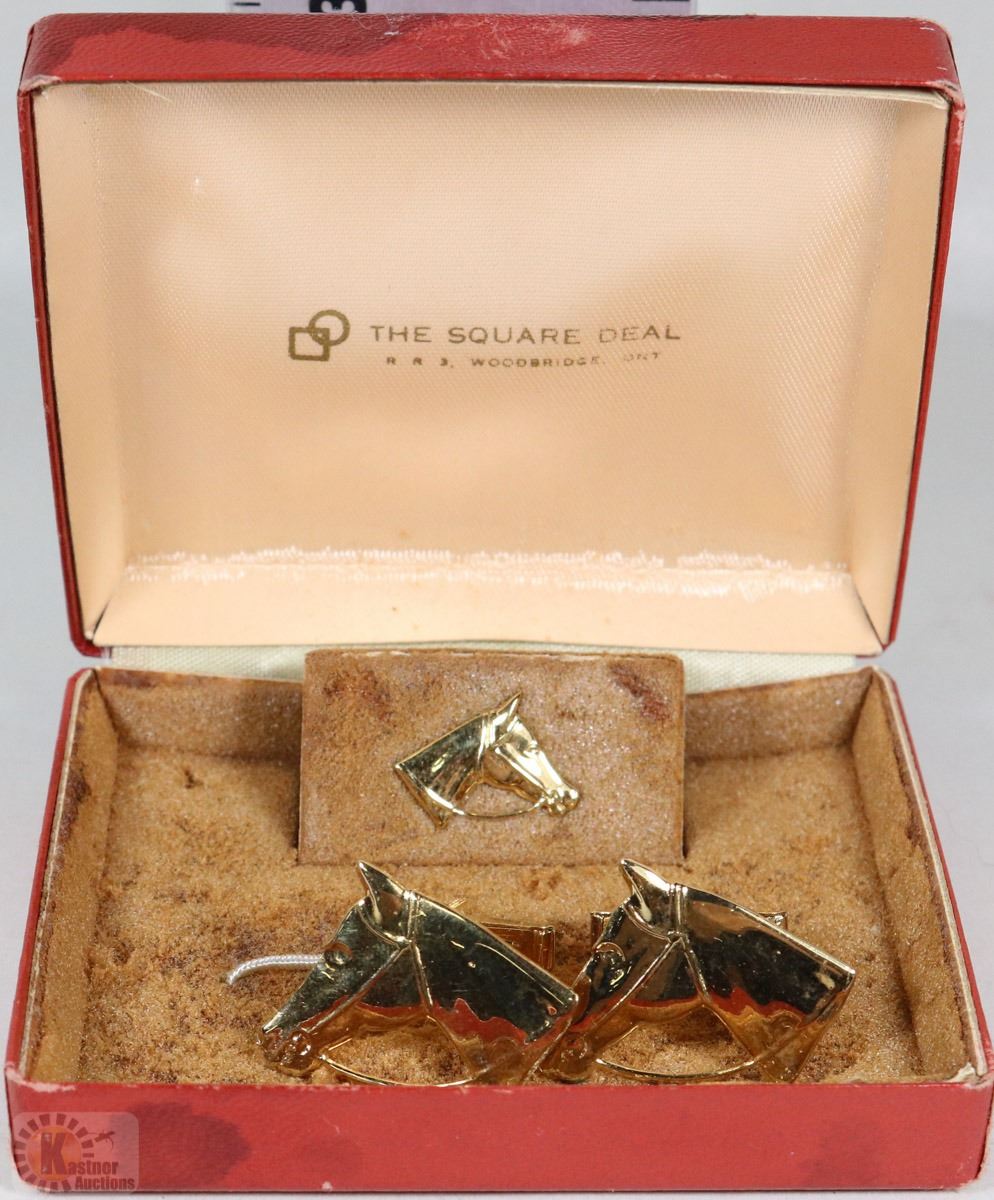 THE SQUARE DEAL "HORSE FIGURE CUFFLINKS" WITH PIN