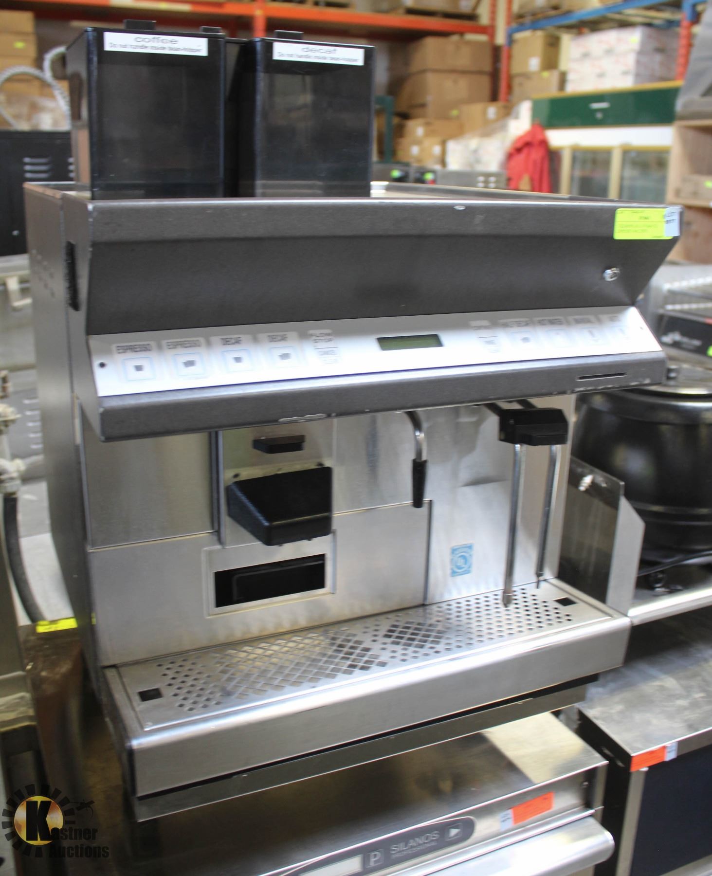 MODEL: CTS2. 208V 6600W. CAPABLE OF 220 ESPRESSOS, 170 COFFEES, 240 TEAS PER HOUR.FULLY AUTOMATIC ESPRESSO MACHINE WITH TWO HOPPERS, BUILT-IN GRINDER, AUTO-TEMP STEAMING WAND. RECENTLY SERVICED WITH BRAND NEW GRINDER MOTOR AND CAPACITOR.