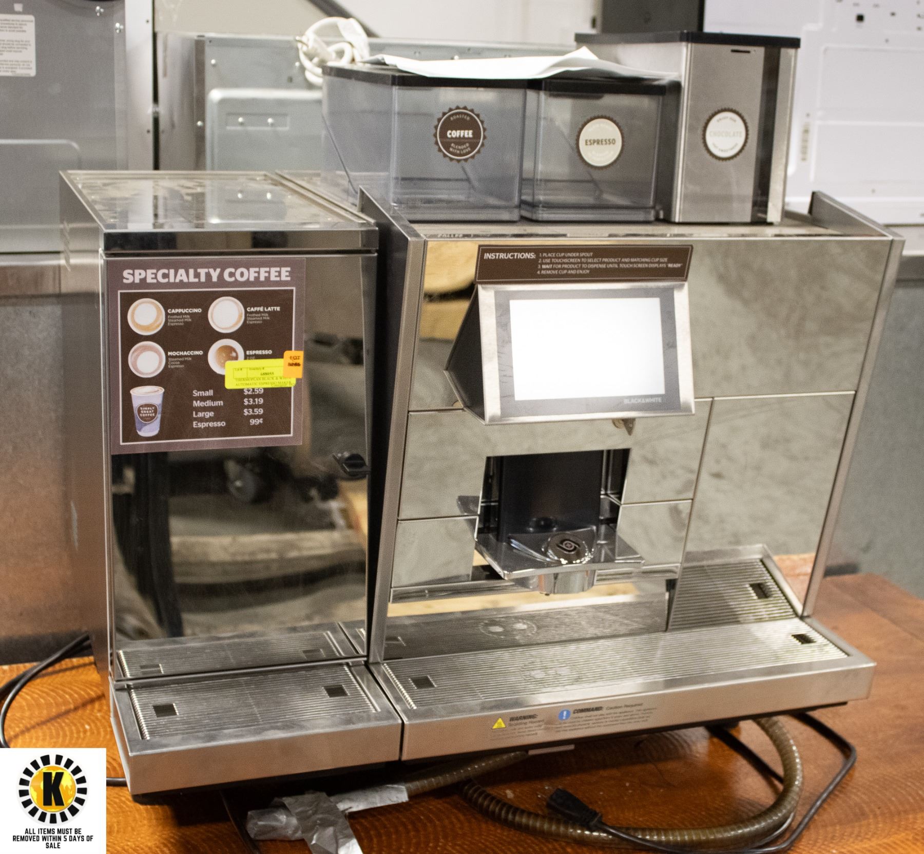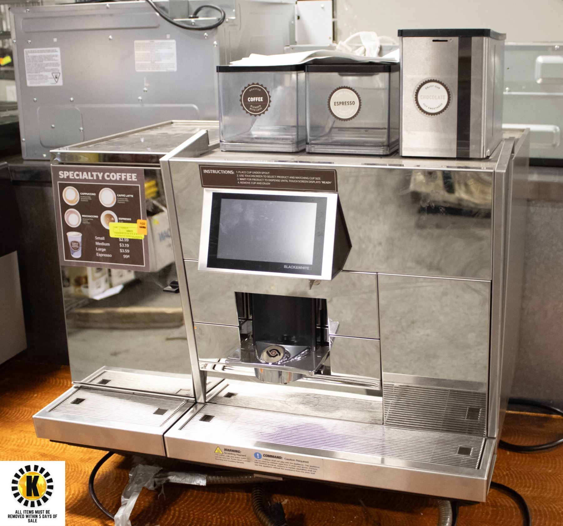 HOT WATER: 18L, CAPPUCCINO: 130, LATTINO: 140, CHOCOLATE BEVERAGE: 120 ** MISSING ONE LEG **