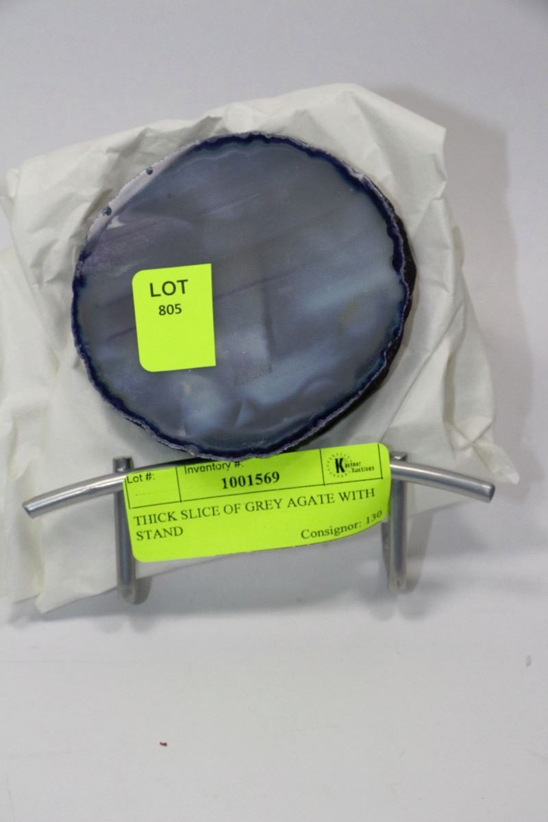THICK SLICE OF GREY AGATE WITH STAND