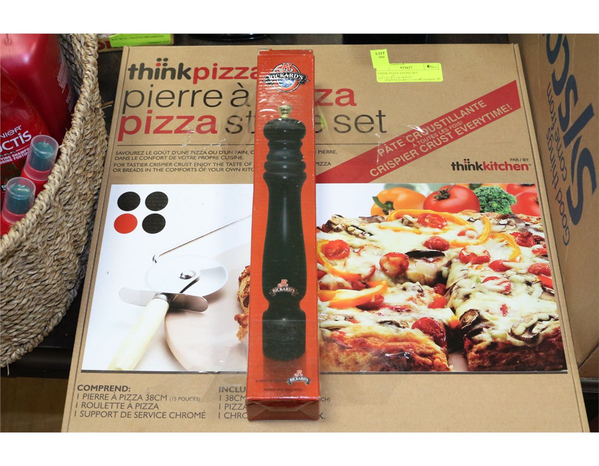 INCLUDES 15" PIZZA STONE, PIZZA CUTTER, CHROME SERVING RACK & A RICKARDS PEPPER MILL
