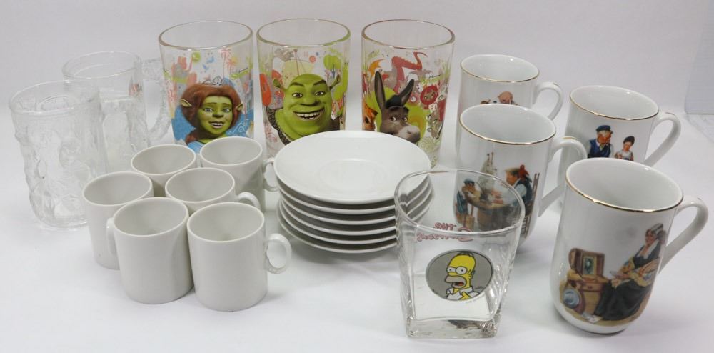 LOT OF COLLECTOR GLASSWARE INCLUDING 4 NORMAN ROCKWELL, BATMAN, AND MORE 204376,204379
