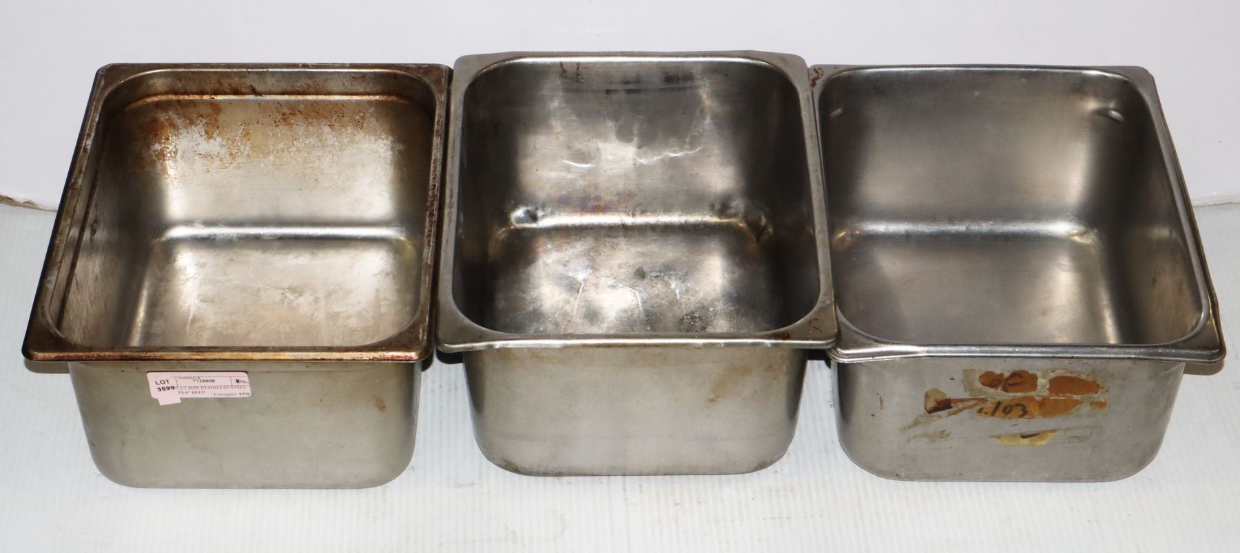 THREE 1/2 SIZE STAINLESS STEEL INSERTS 6" DEEP