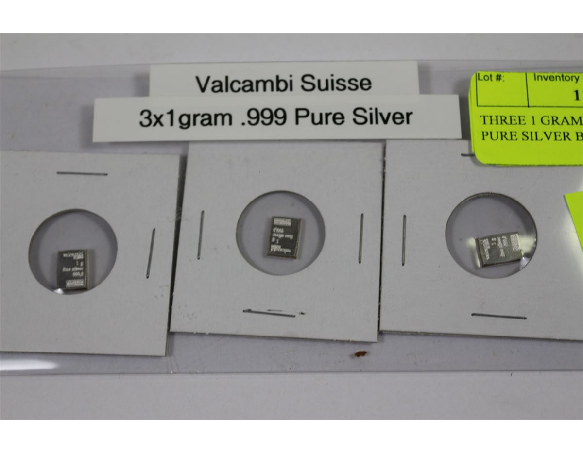 THREE 1 GRAM VALCAMBI SUISSE PURE SILVER BARS