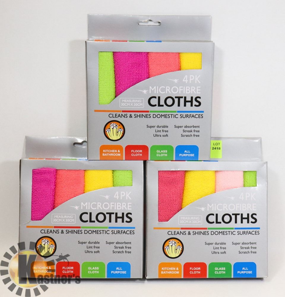 12 TOTAL CLOTHS (EACH 30CM X 30CM) LINT FREE, SUPER ABSORBENT, SCRATCH FREE.