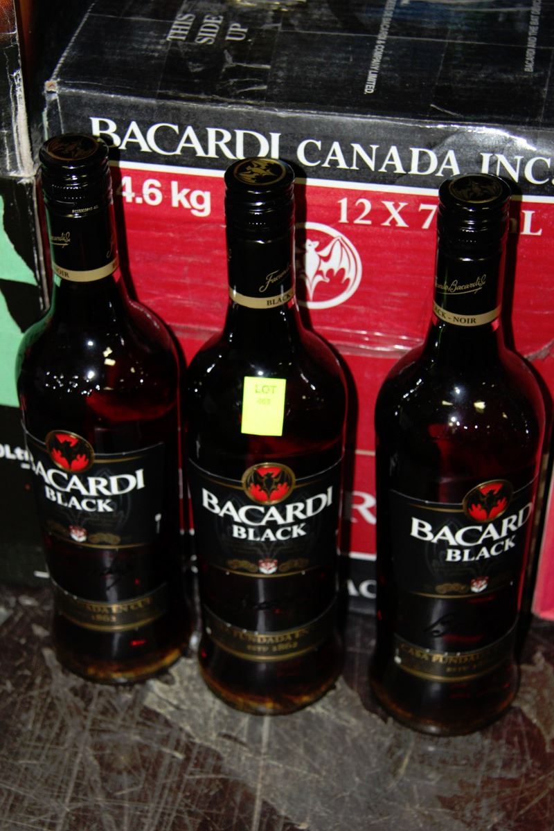THREE 750 ML BOTTLES OF BACARDI BLACK RUM 40%