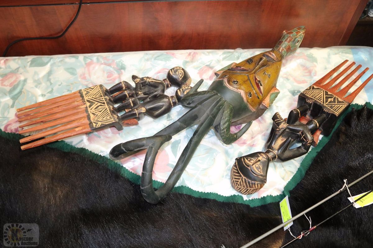 THREE ASST AFRICAN WOOD WALL HANGINGS