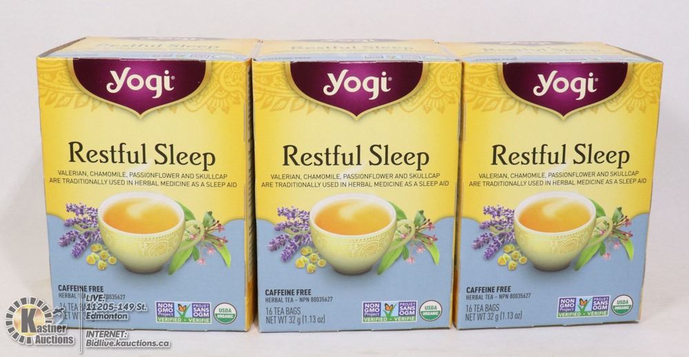 THREE BOXES OF YOGI RESTFUL SLEEP CAFFEINE FREE TEA
